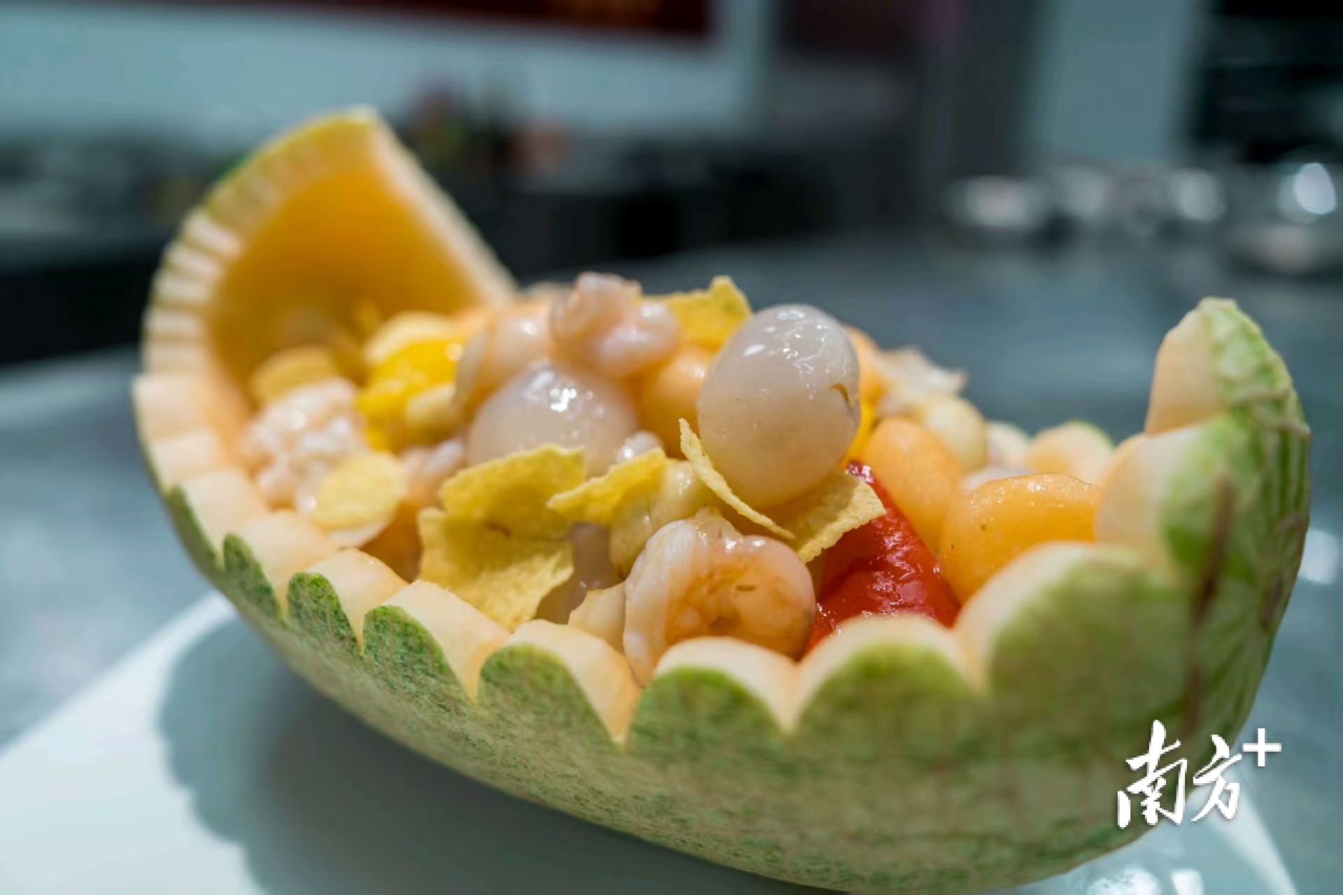 叶易泉团队经过实验和考究,创新推出了一桌色香味俱全的荔枝宴。这桌荔枝宴包含整整16道以茂名荔枝为原材料的荔枝风味菜。这里面既有“喜上荔梢”“福满荔乡”这样的精美如艺术品的手工菜,也有“火焰荔汁雪花牛肉”“荔枝蜜瓜船”中西合璧的创新菜,还有“百花酿荔枝”“荔汁排骨”地道家常菜,还包括“荔枝千层冻”等中西式甜点。一时间,荔枝宴成为茂名人夏日待客的别致礼遇。