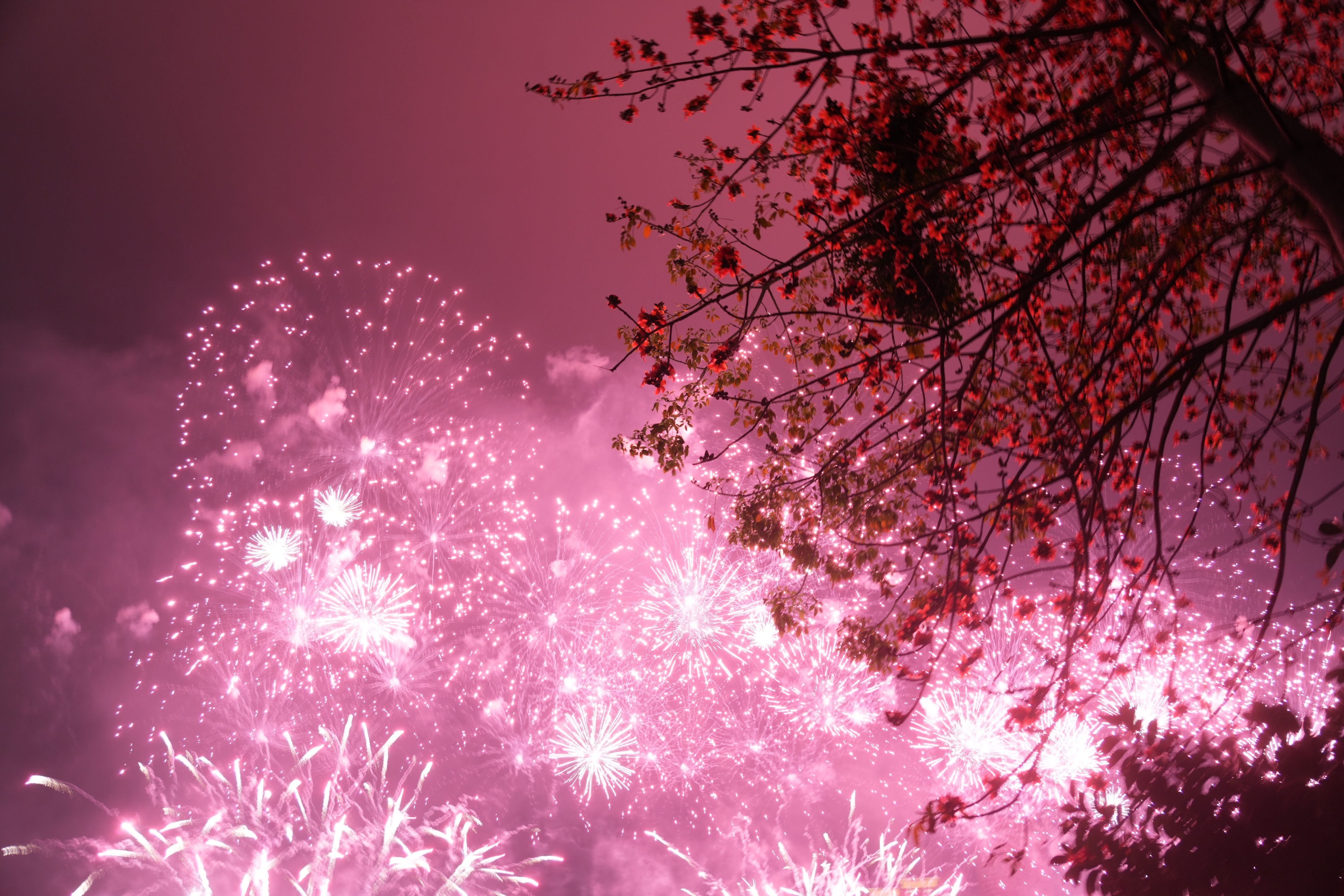 紧接着,一朵巨大的木棉花凌空盛放,英雄花开英雄城,金色花蕊流光闪烁,宛如夜空中一枚璀璨的英雄勋章,象征着这座城市坚韧不拔、蓬勃向上的精神风貌,在岁末年初的夜空里,为奋进的时代献上最热烈的礼赞。
