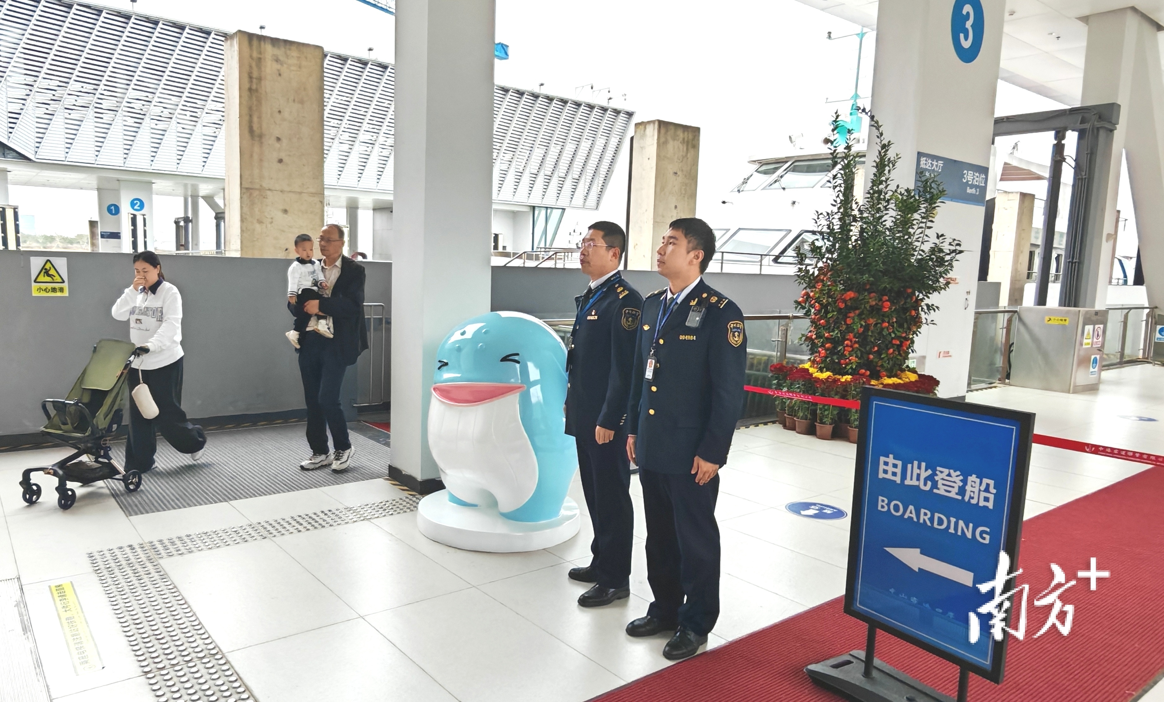 工作人员正在维护旅客上下船秩序。  通讯员 陈慧 供图