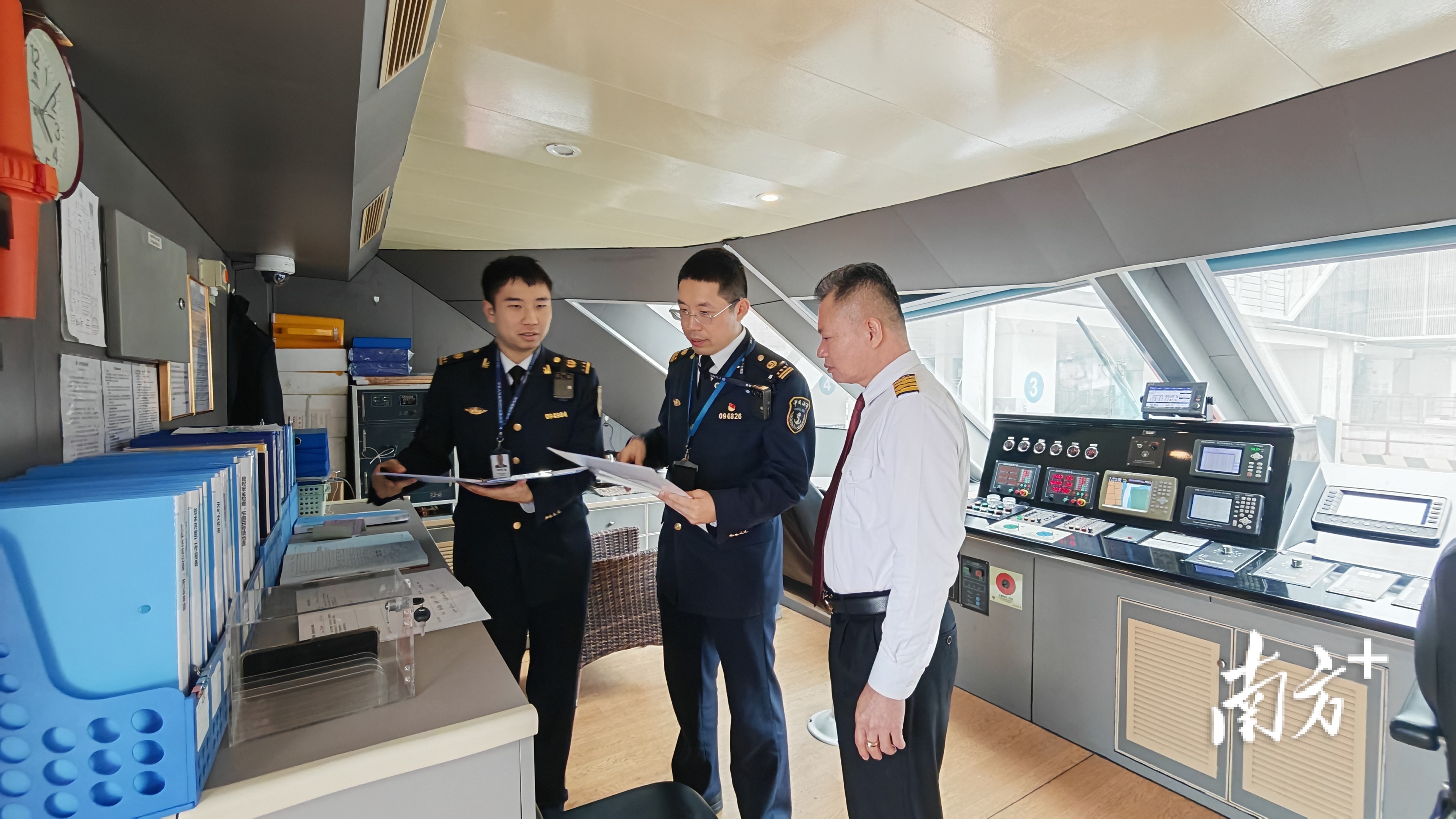 工作人员正在开展船舶开航前自查工作落实情况核查。  通讯员 陈慧 供图