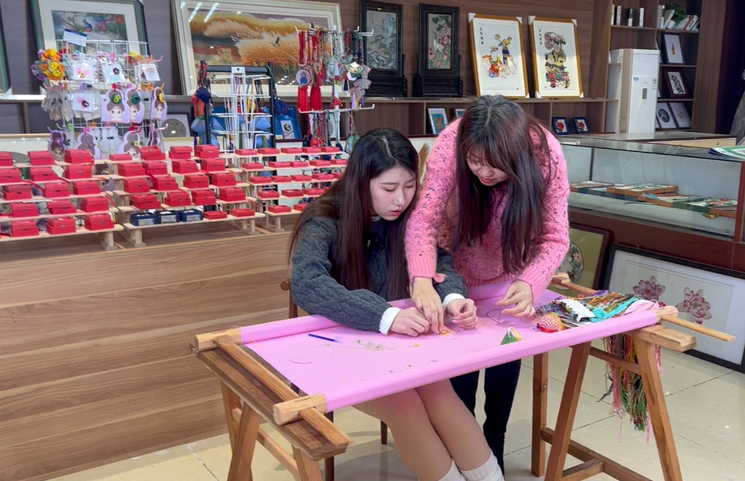 在达斡尔族刺绣第四代传承人谢丹妹的非遗工作室内,谢丹妹正在耐心地教慕名而来的大学生达斡尔族的刺绣基本功。工作室内摆放着上千件精美的刺绣作品。谢丹妹是省级非遗项目达斡尔族刺绣的市级传承人。谢丹妹说,工作室从达斡尔族刺绣技艺的挖掘、继承、研发等角度出发,遵循“以产品传播文化,以文化带动经济”,通过网络+实体以及参加各种展会,一边传承文化,一边为广大农村妇女增加就业机会,现在有30多名绣娘可以绣制来自全国各地定制的产品,不仅宣传地方非遗文化,还助力乡村经济发展。“我去年学习达斡尔族的刺绣,今年就能刺绣一些定制产品了,有了这门手艺,家里增加了一份收入。”哈拉达斡尔族村村民李丹说。