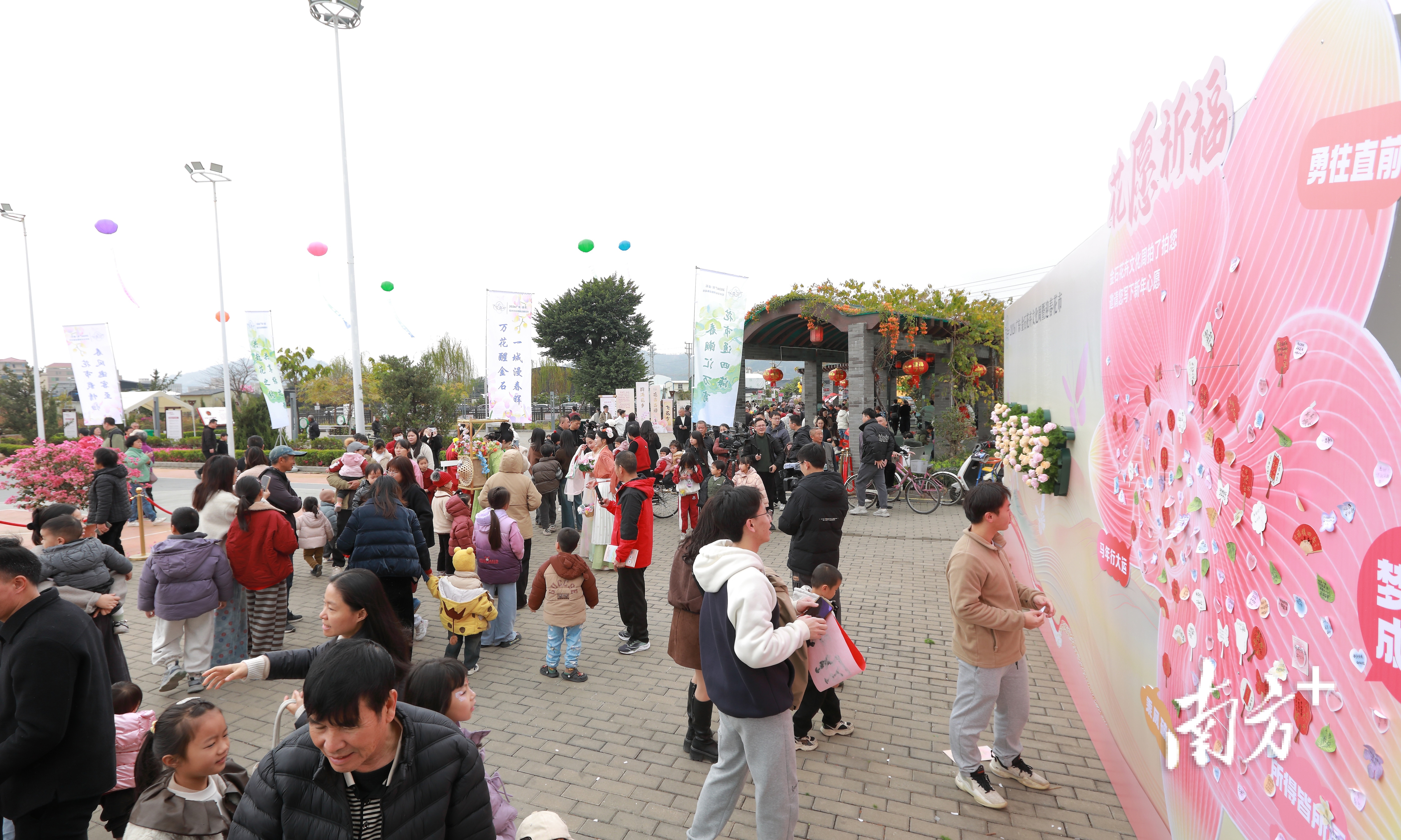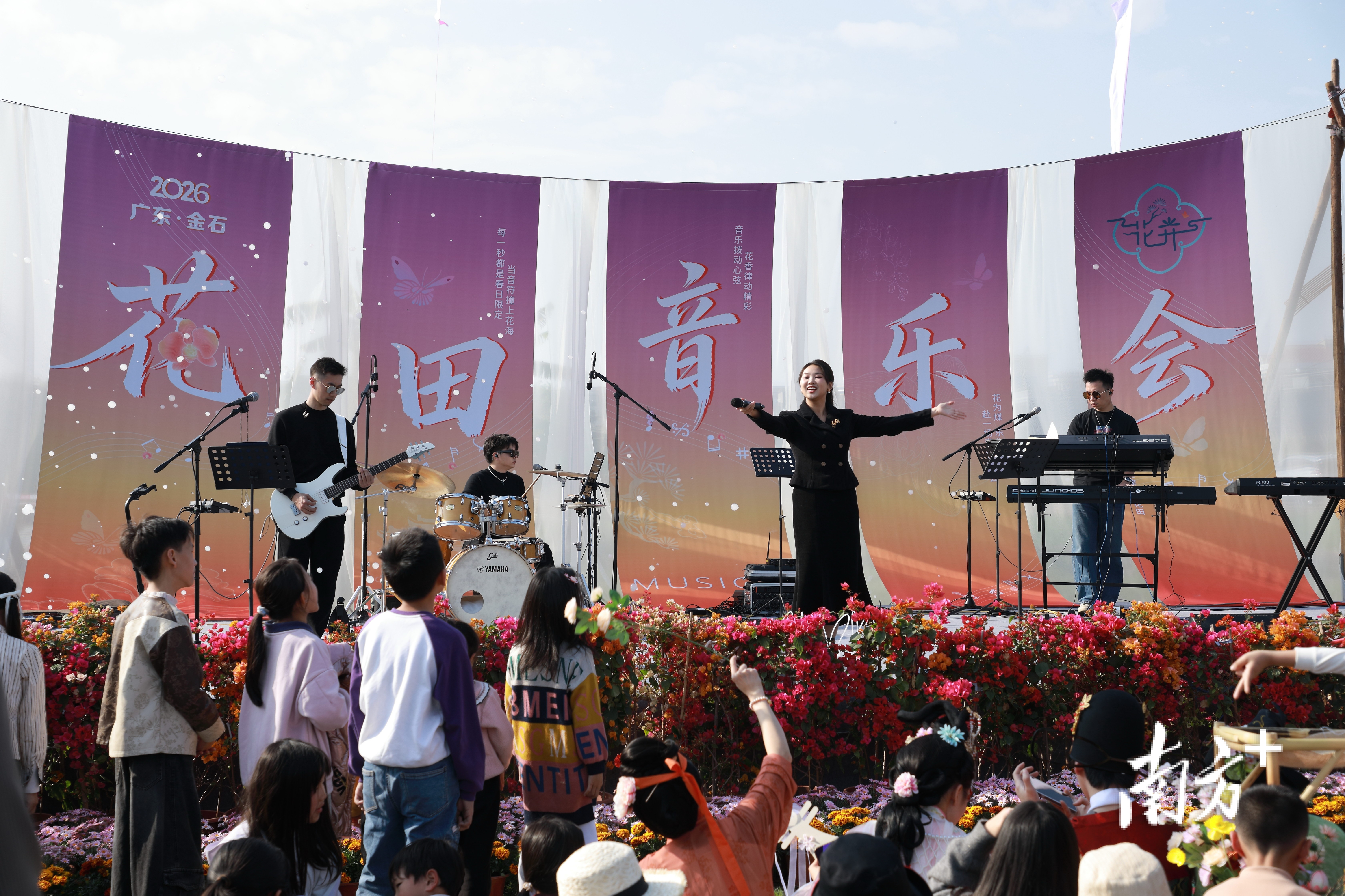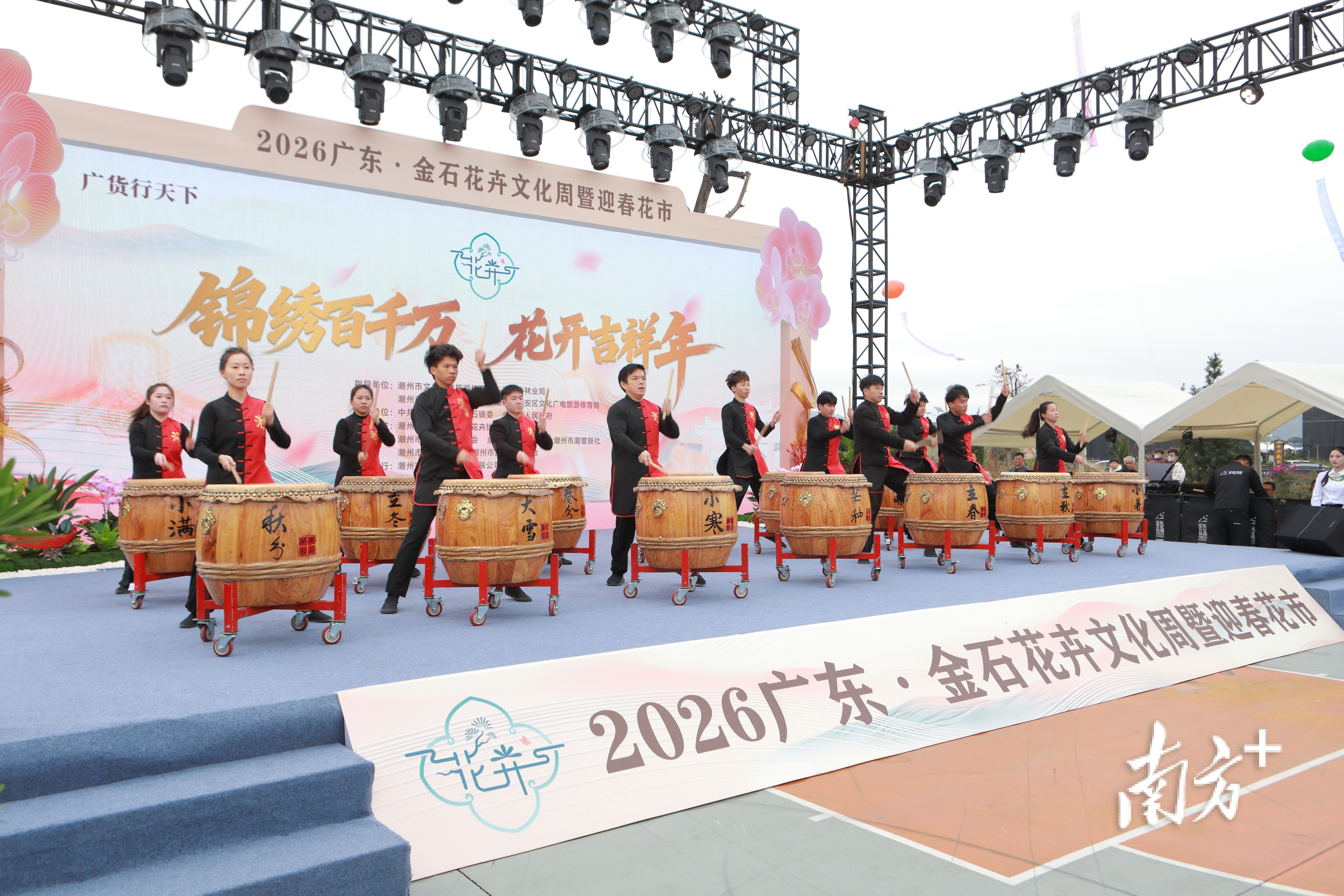 花香与文韵在此深度交融。非遗“花漾市集”上,20个特色摊位依次排开:铁枝木偶戏活灵活现,潮州嵌瓷光彩熠熠,潮州剪纸精妙绝伦;“迎春飞花令”游戏中,游客争相吟诵含“花”的诗词,赢取小巧盆栽;花田音乐会上,经典旋律伴随花香与光影,营造出惬意氛围……这些活动,正是金石镇“发挥资源禀赋,推动融合发展”的生动实践。通过联动非遗、状元等文化资源,开发花卉文创,形成“赏花+研学+购物”多元业态,有效释放产业聚合效应。
