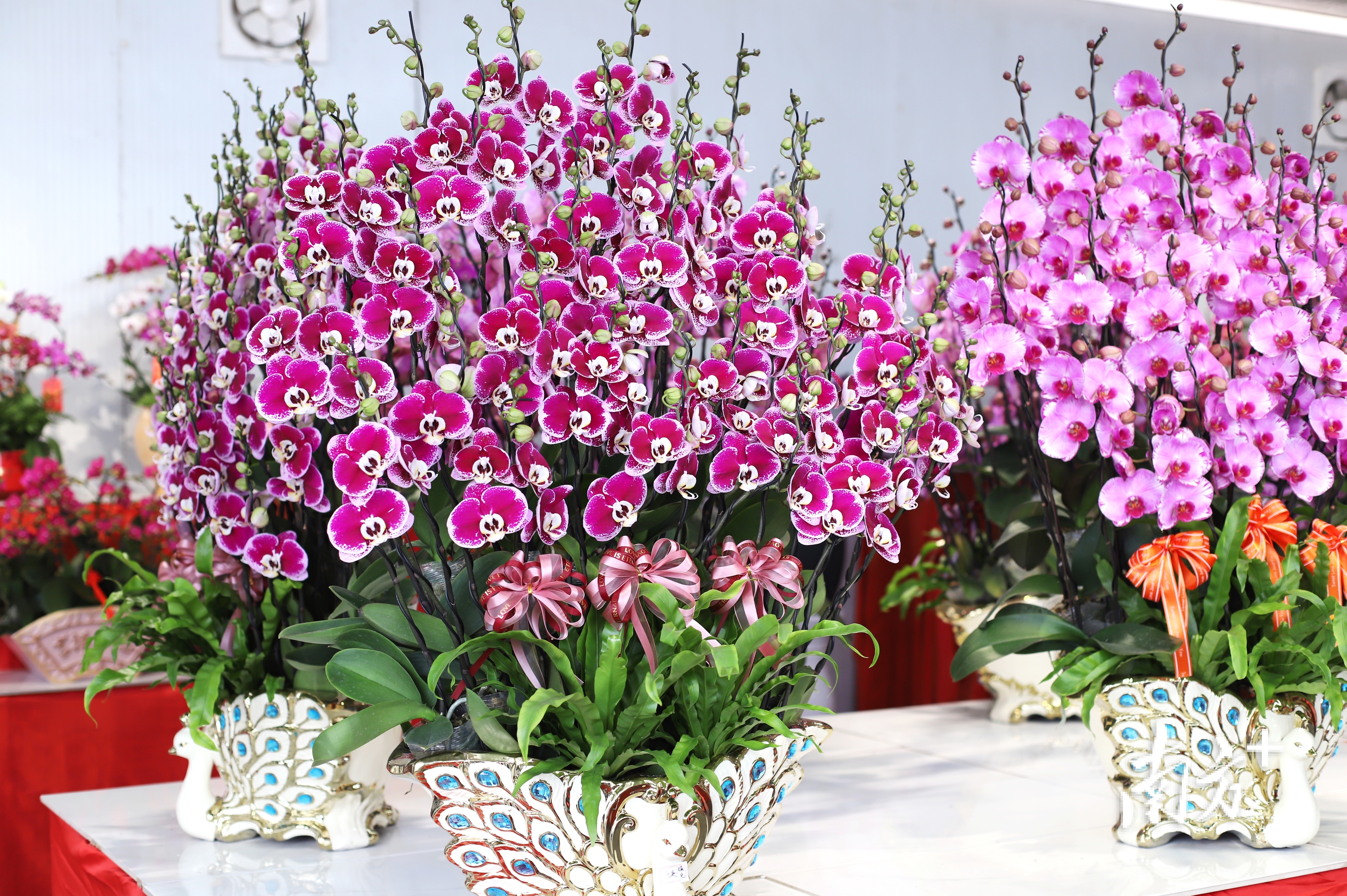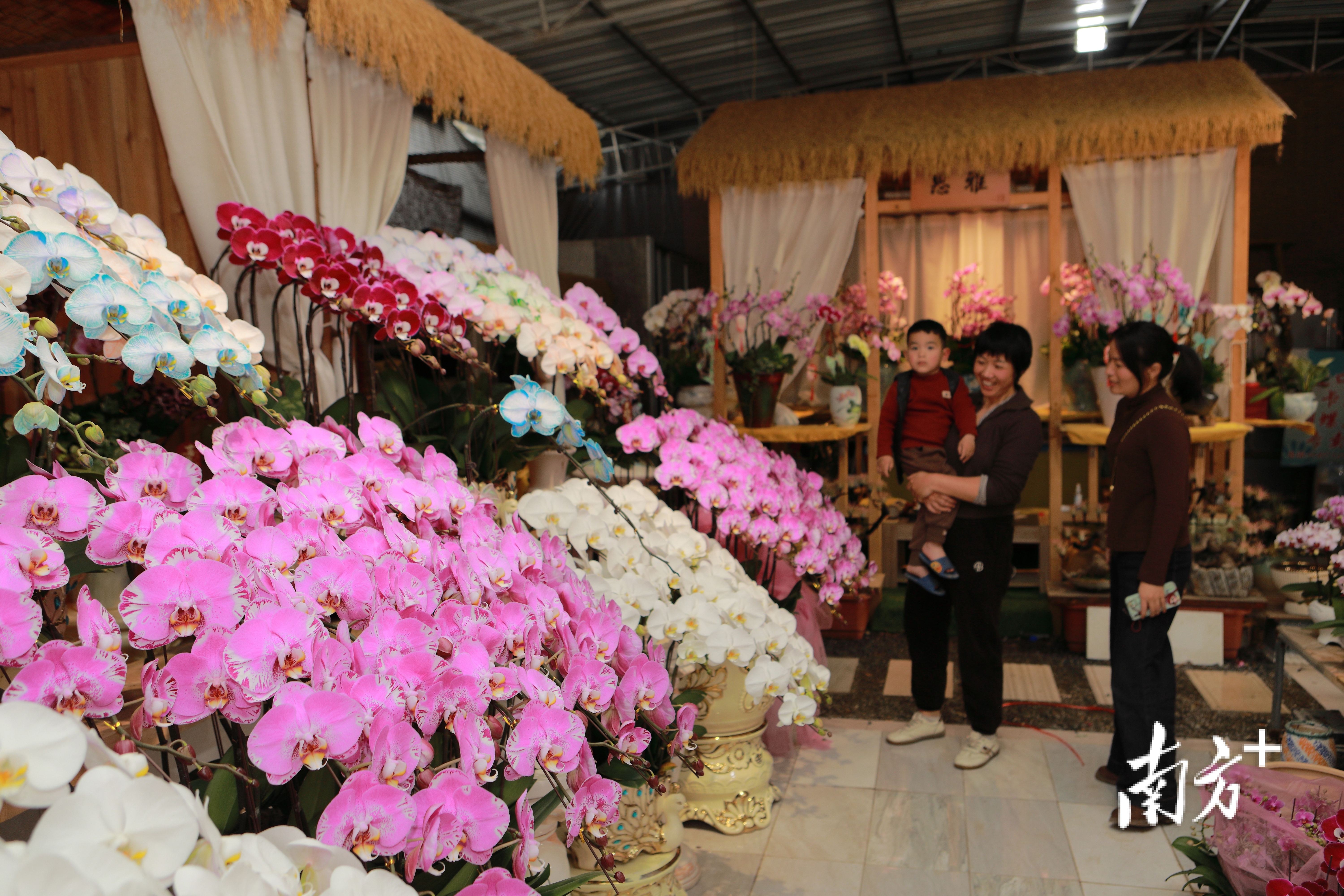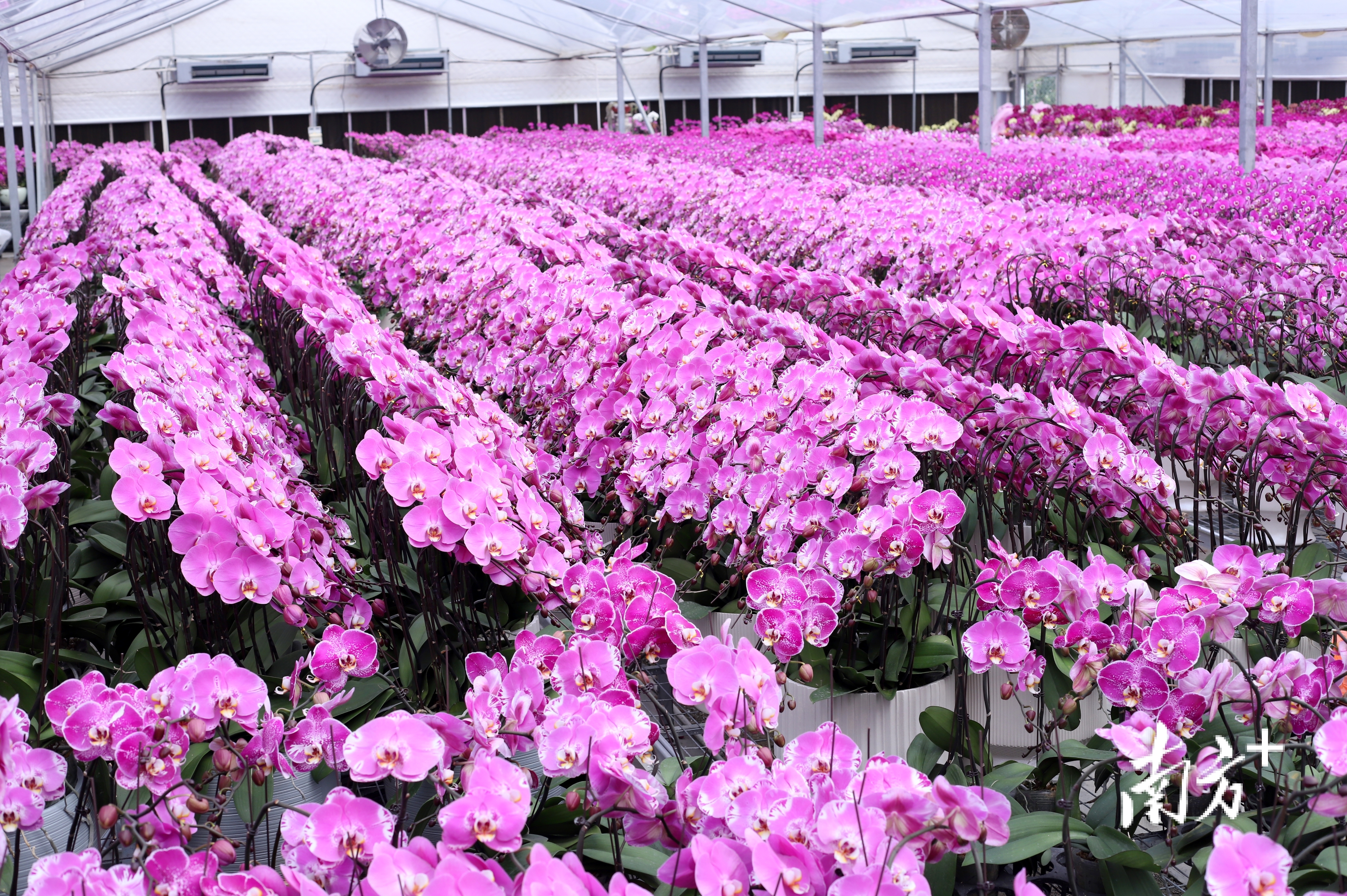 旺盛的消费需求,早已传导至上游的生产端。清晨6时半,光斌花木场兰业基地已是一片繁忙。步入恒温温室,仿佛闯入蝴蝶兰的海洋——约14万株蝴蝶兰正值盛放,粉若云霞,紫如锦缎,鹅黄淡雅,层层叠叠,宛如万千彩蝶栖满枝头。花影间,工人们娴熟地修枝、组盆。插花工阿霞从清早忙到深夜,“订单特别多,都在赶工。”她介绍,按一盆12支花计,她一天要完成近40盆,经手四五百支花。