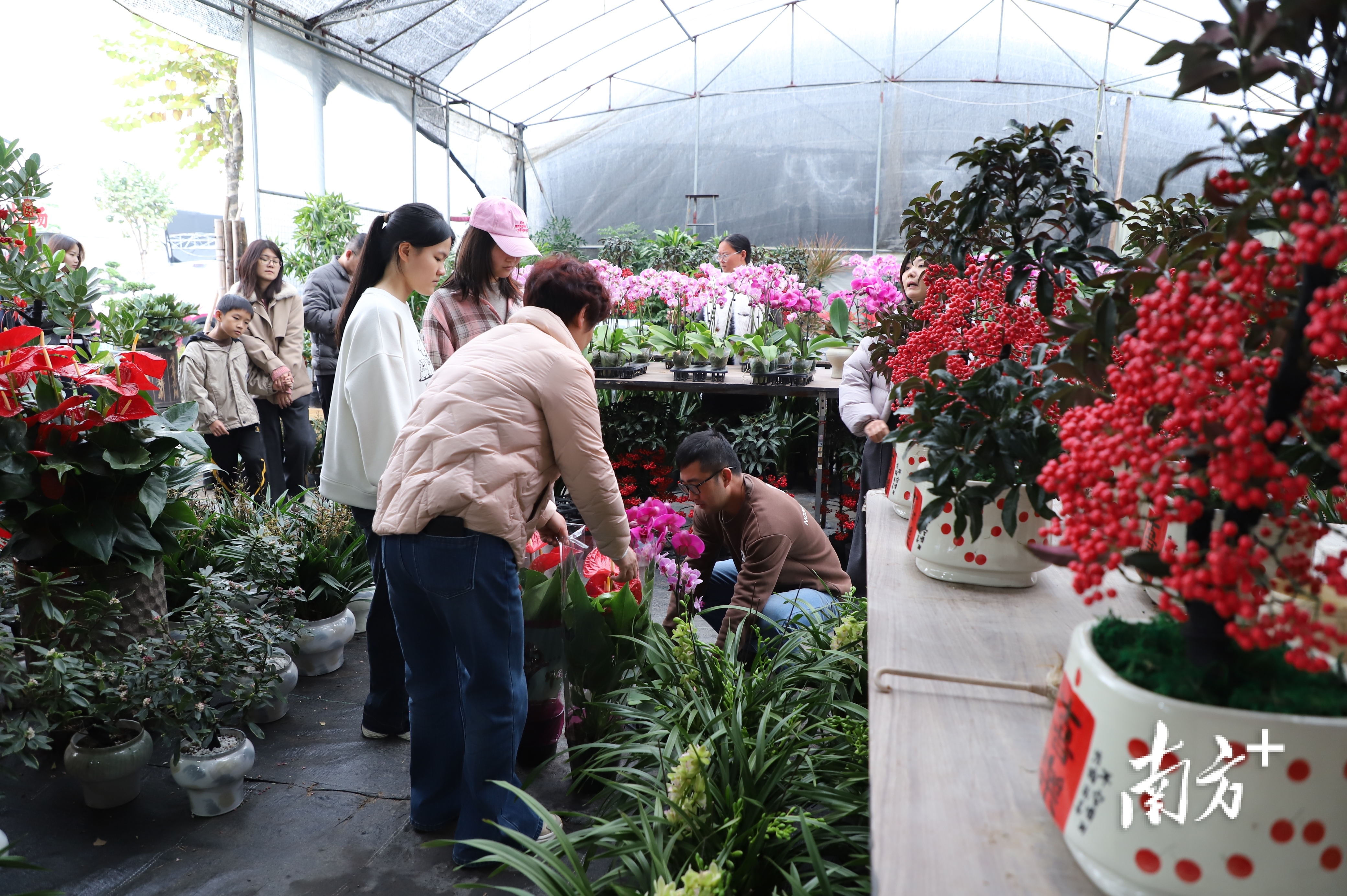 以去年为例,2025年迎春花市吸引游客超10万人次,销售额1000多万元,带动园区花卉销售额达7000万元,形成了“以花促贸、以贸兴花”的良性循环。今年花市将持续至3月3日,预计将再掀消费热潮。