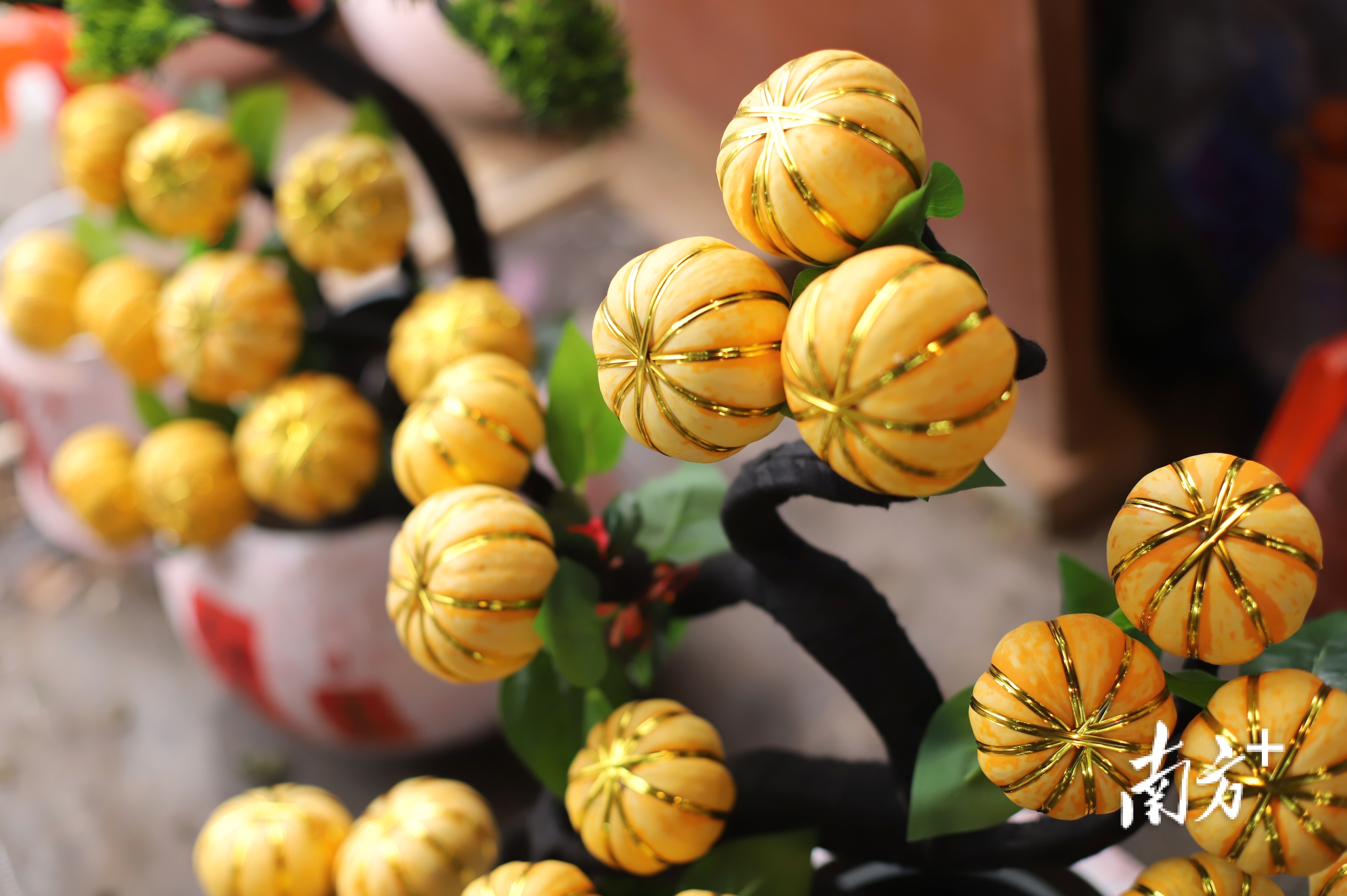 创新,是金石花卉持续领跑的密码。今年,各类“挂果”植物成为花友新宠。鹏瑞园推出的佛手果盆栽,将“潮州三宝”之一巧妙融入园艺,清雅别致又自带清香;大三元花木场的“小金瓜”盆栽,采用真南瓜嫁接,寓意“蒸蒸日上”,备受青睐。为迎合市场求新求变的需求,不少年花还运用铝线塑形工艺,打造出斜飘、S弯等灵动造型,令人耳目一新。