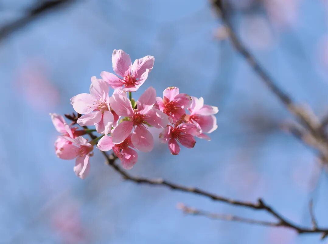 粉嫩花瓣与蓝天融为一体