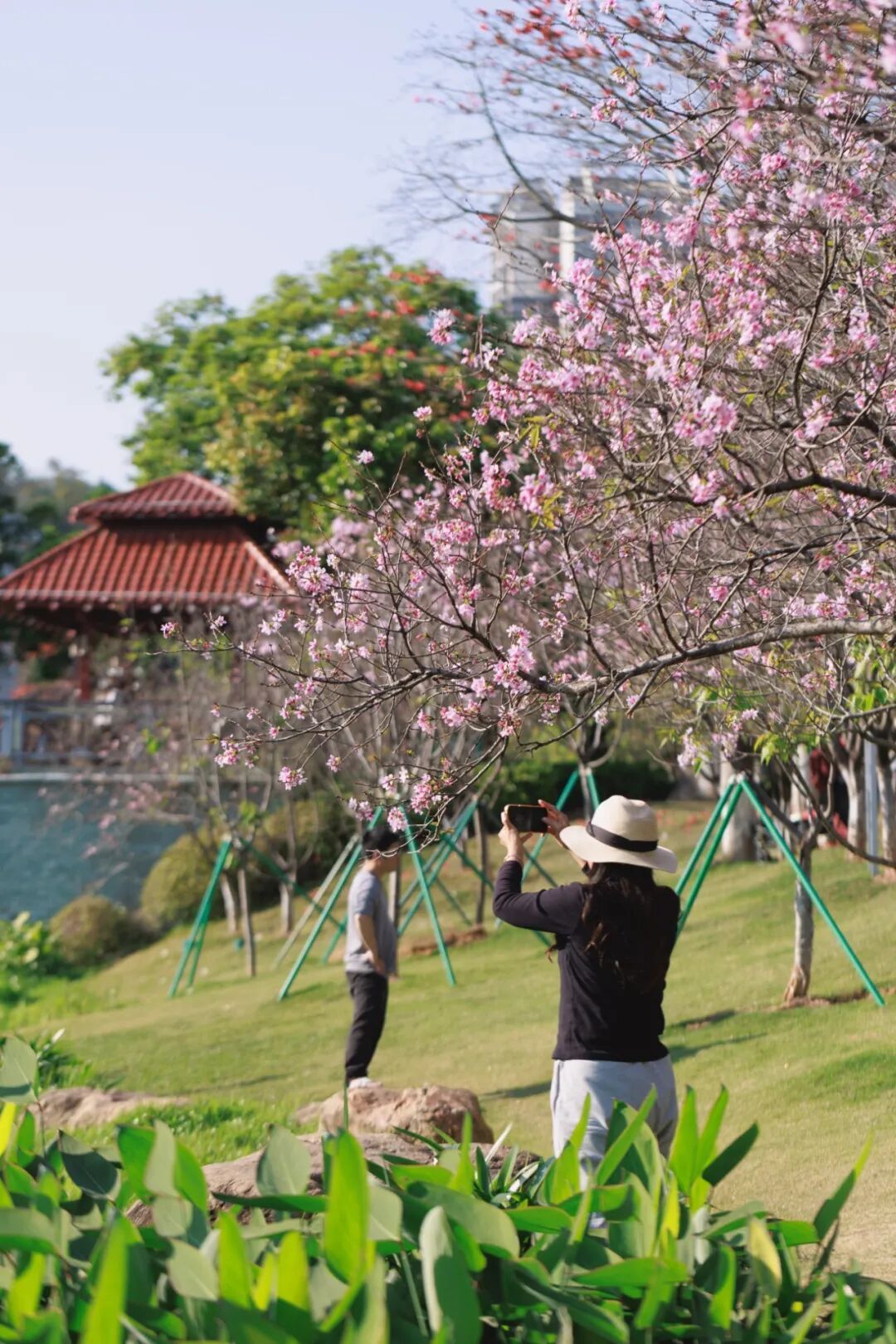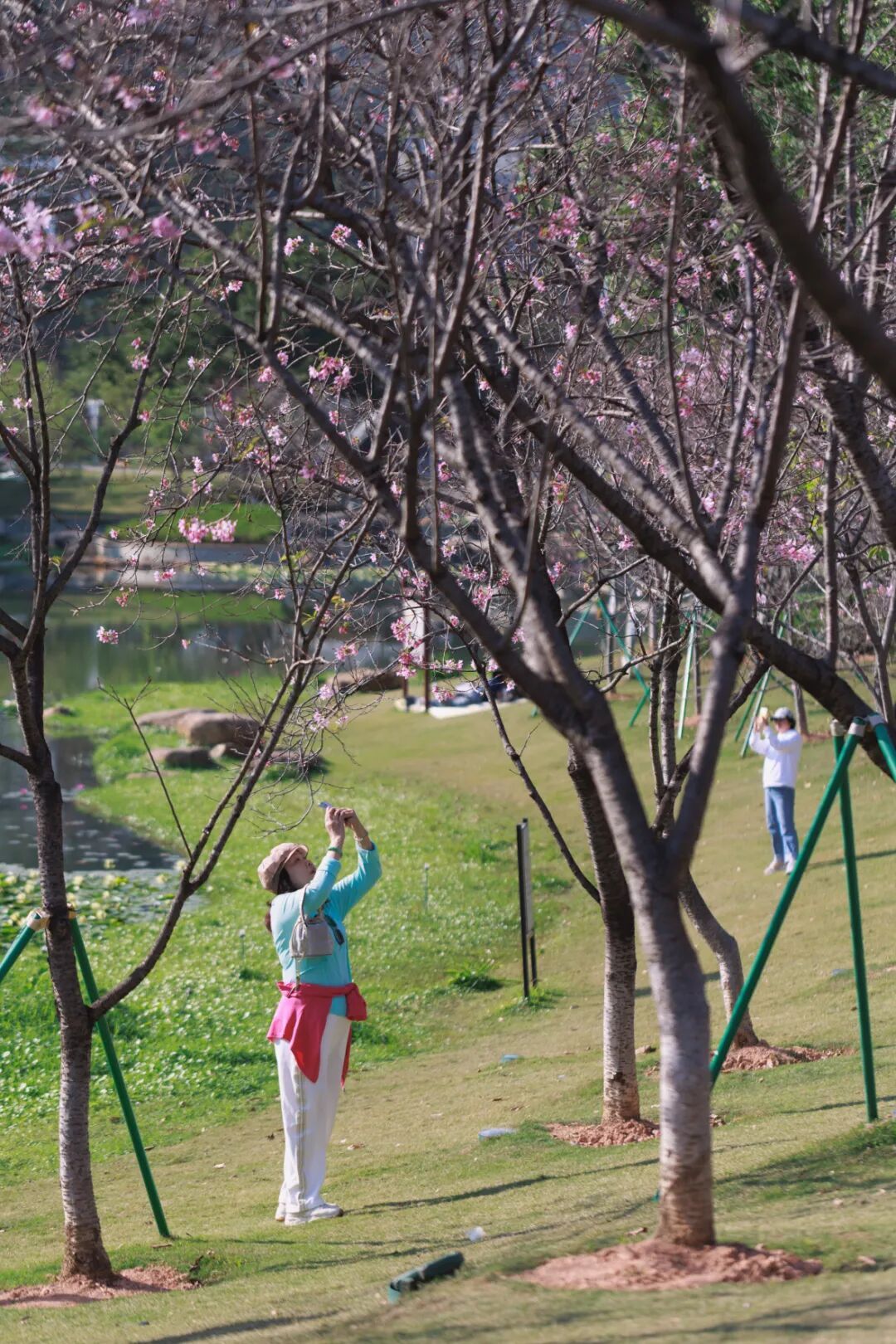 来创业公园看湖光映樱色