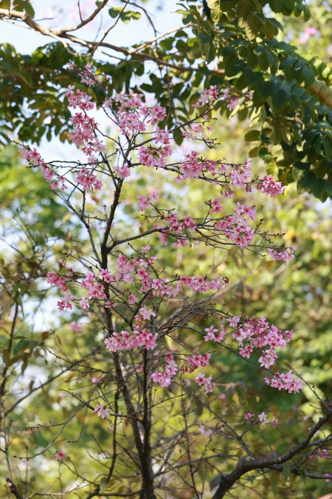 那是樱花树在盎然绿意间