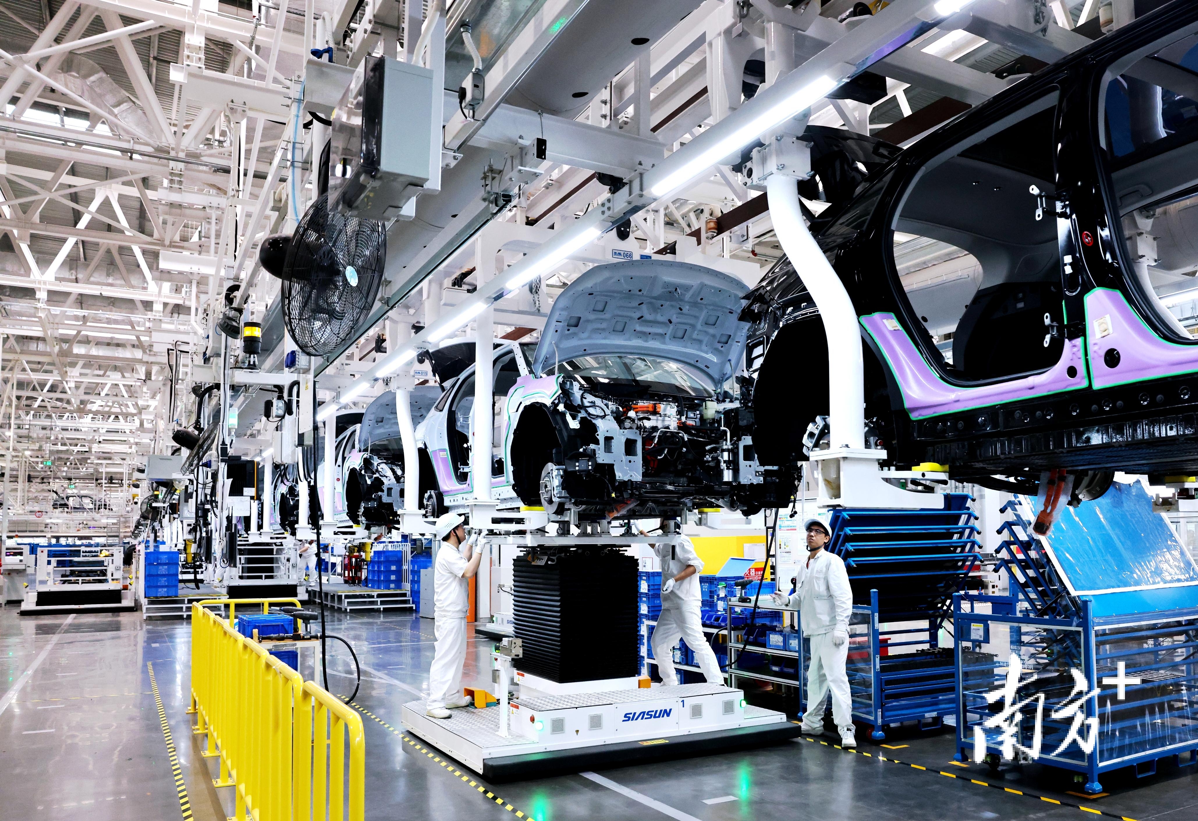 小鹏汽车肇庆工厂MONA M03生产线。南方+记者 张令 摄