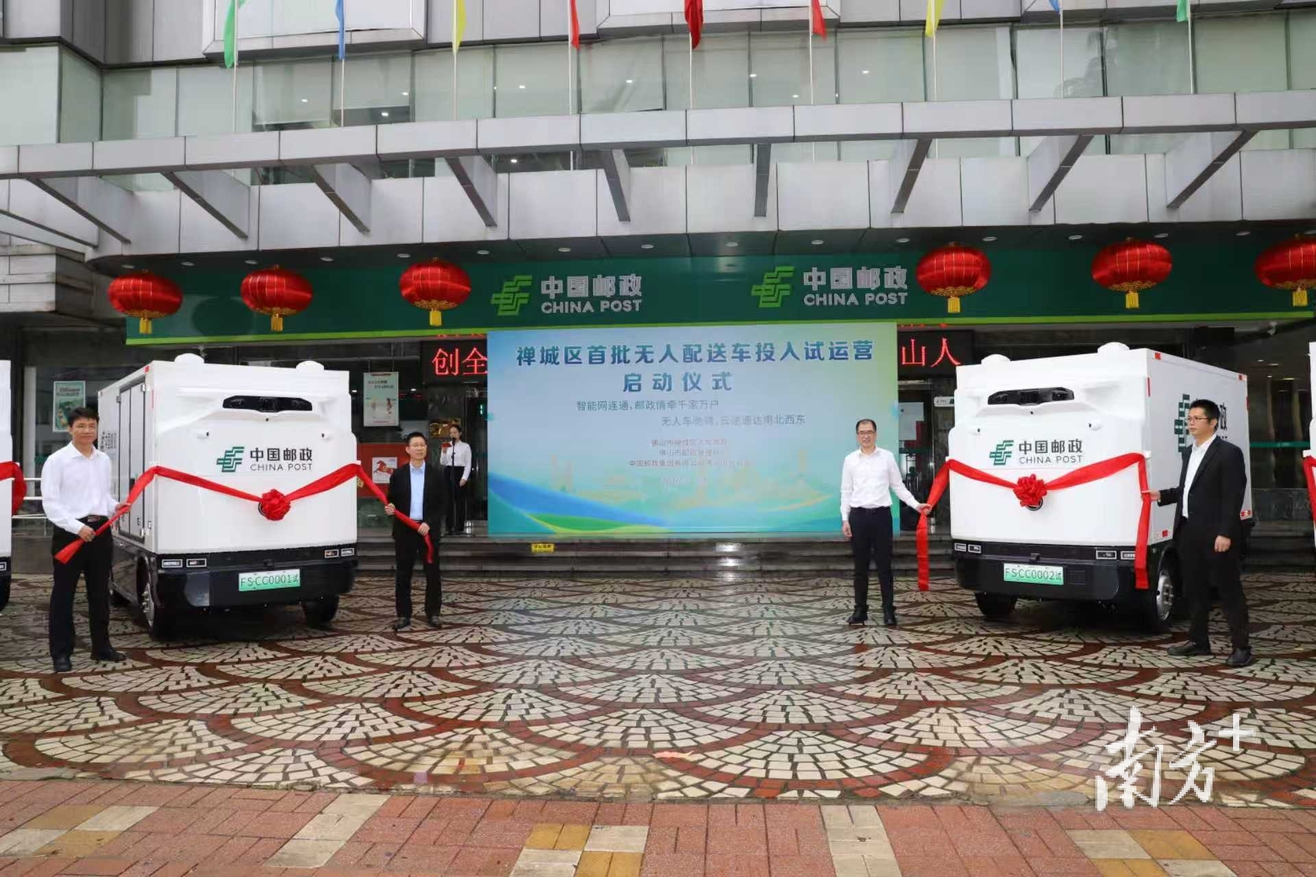 2月28日下午,佛山首批邮政无人配送车试运营启动仪式在中国邮政佛山市分公司汾江南营业厅门前举行。这标志着禅城智慧物流建设迈入新阶段。