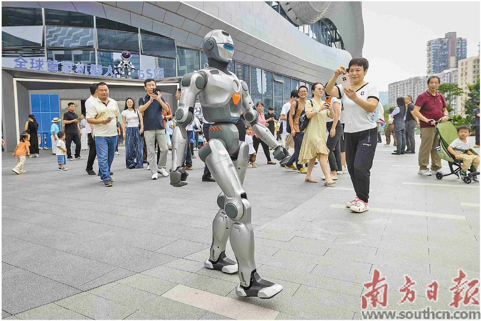 深圳街头,人形机器人与市民互动。