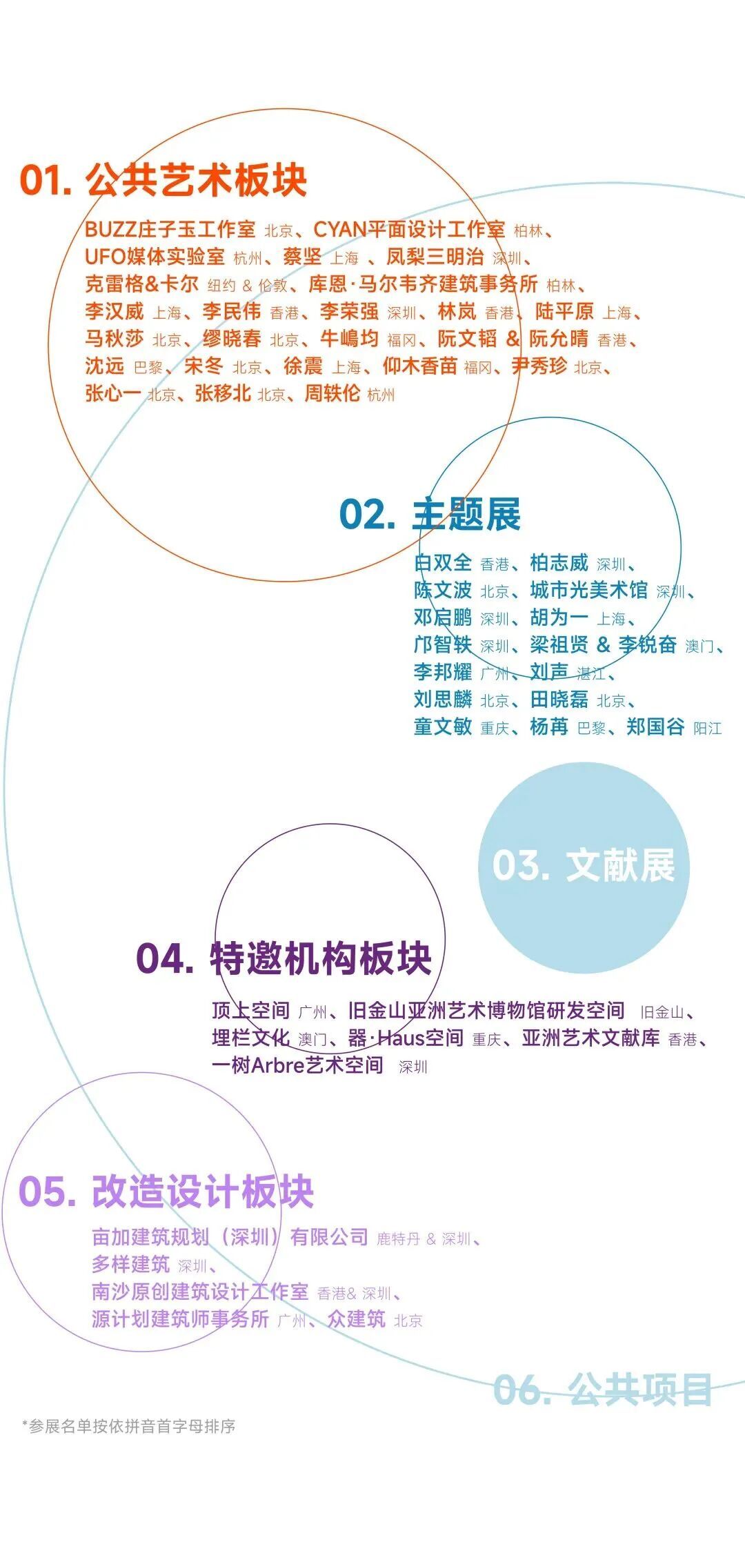 本届展览共分为六大板块,50组横跨艺术、建筑、设计及机构实践领域的参展者,借助装置、雕塑、绘画、影像、声音、数据地图、田野调查、社区协作等多元媒介与方法,从地方生态与城市生长经验中提炼灵感。其中,三十余项是全新的委托创作与设计,27组/件装置作品在环湖片区呈现。
