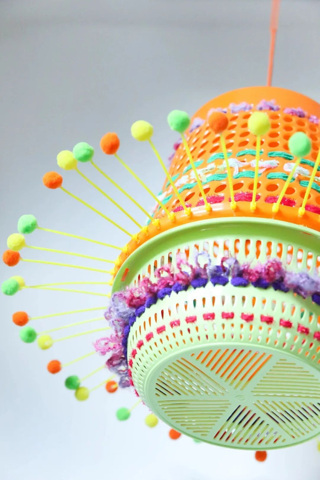 以东莞“雕柚为灯”为灵感的“桶仔追月——编织灯笼工作坊”,也通过编织赋予制造业、手工艺新的温度。一盏盏挂在展厅外的塑料篮灯笼,便藏下了市井生活的温热记忆。