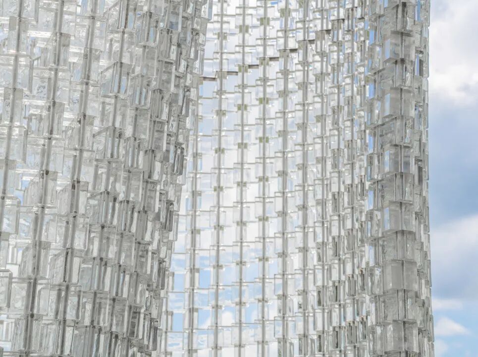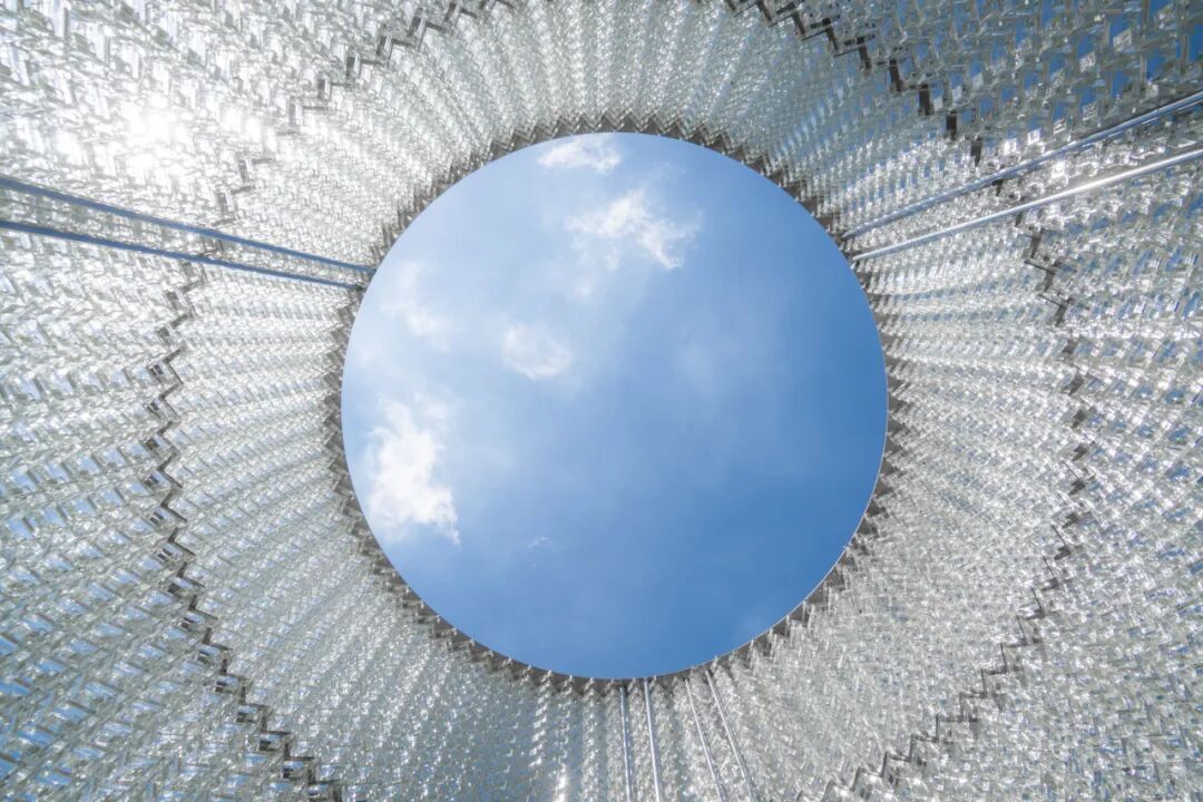 松山湖通湖礼廊大草坪上,竖起一座玻璃“光塔”。光线折射如同经纬线交织,在万千棱镜间熠熠生辉,搭建出一场“光”的游戏。