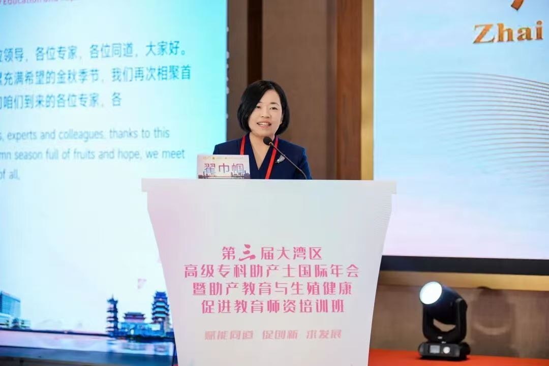 广东省护士协会大湾区助产士分会会长、大湾区助产专科学院院长翟巾帼致辞。
