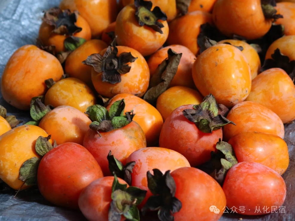 现晒柿干无添加,可作伴手礼;柿子饼、柿叶茶解腻,秋日限定甜。