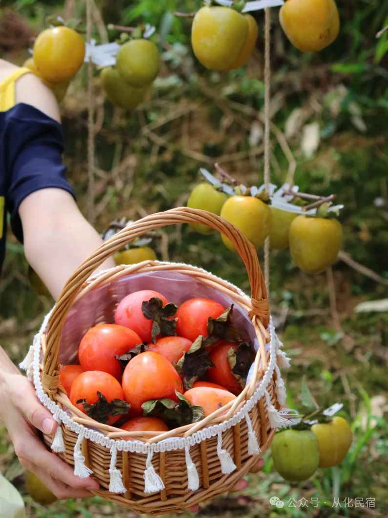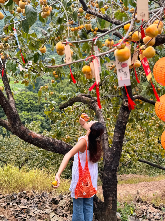 金黄时摘是脆爽清甜的脆柿,放置2-3天变红后成软糯多汁的软柿,无核肉厚超满足;可采摘园区能亲手体验摘果,部分果园免费提供网钩,亲子互动感拉满。
