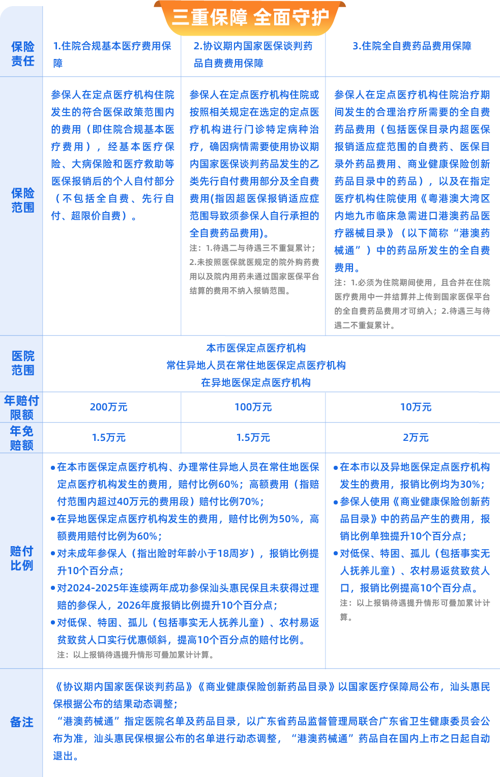 据悉,2026年度“汕头惠民保”经汕头市政府同意,由汕头市医疗保障局、国家金融监督管理总局汕头监管分局指导,旨在进一步完善多层次医疗保障体系。自2022年推出以来,该产品已累计参保超250万人次,截至2025年9月赔付金额突破1.2亿元,最大赔付年龄97岁,最小仅2个月,切实减轻了参保群众的医疗负担。