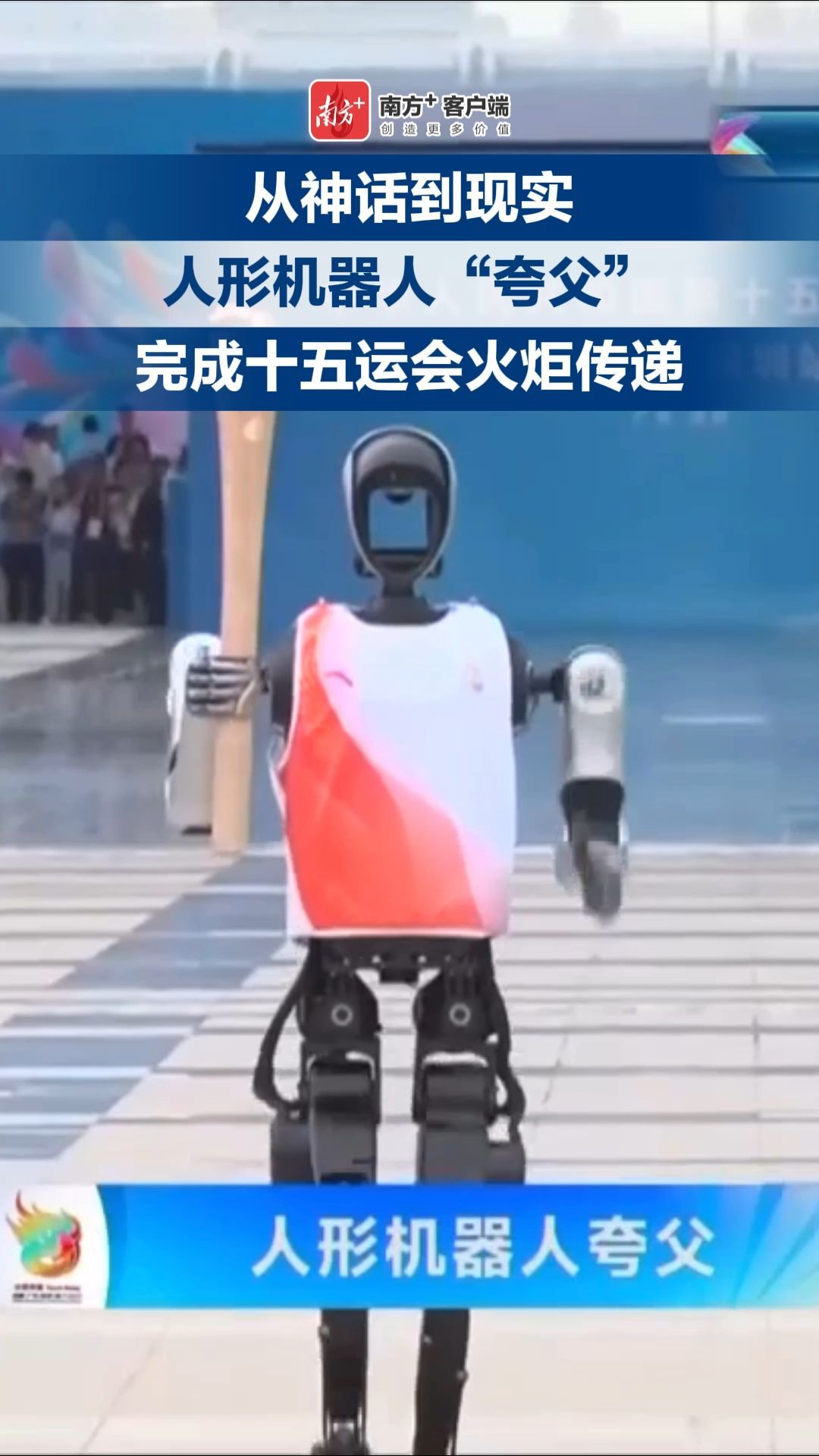 从神话到现实,人形机器人“夸父”完成十五运会火炬传递