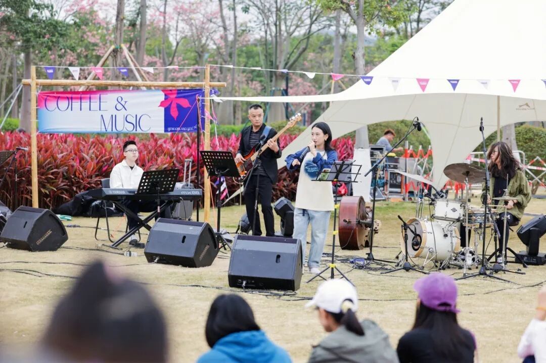 现场不仅设有五个不同风格的“花间剧场”,呈现《FaFa Land》经典歌舞、复古舞厅表演、咏春拳术及梦幻泡泡秀等快闪演出,更邀请澳门人乐队队长左文轩、横琴龙鸣传音融合乐队带来花海音乐会,打造“可听可互动”的艺术空间。