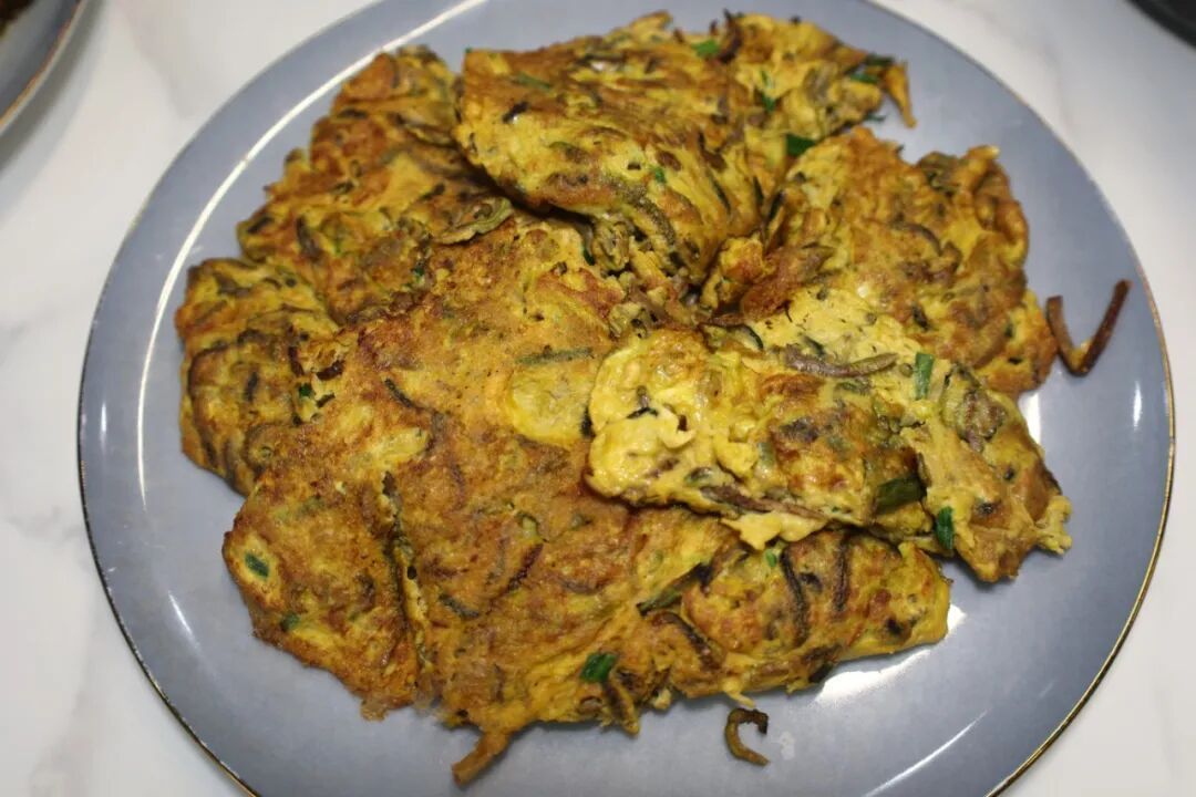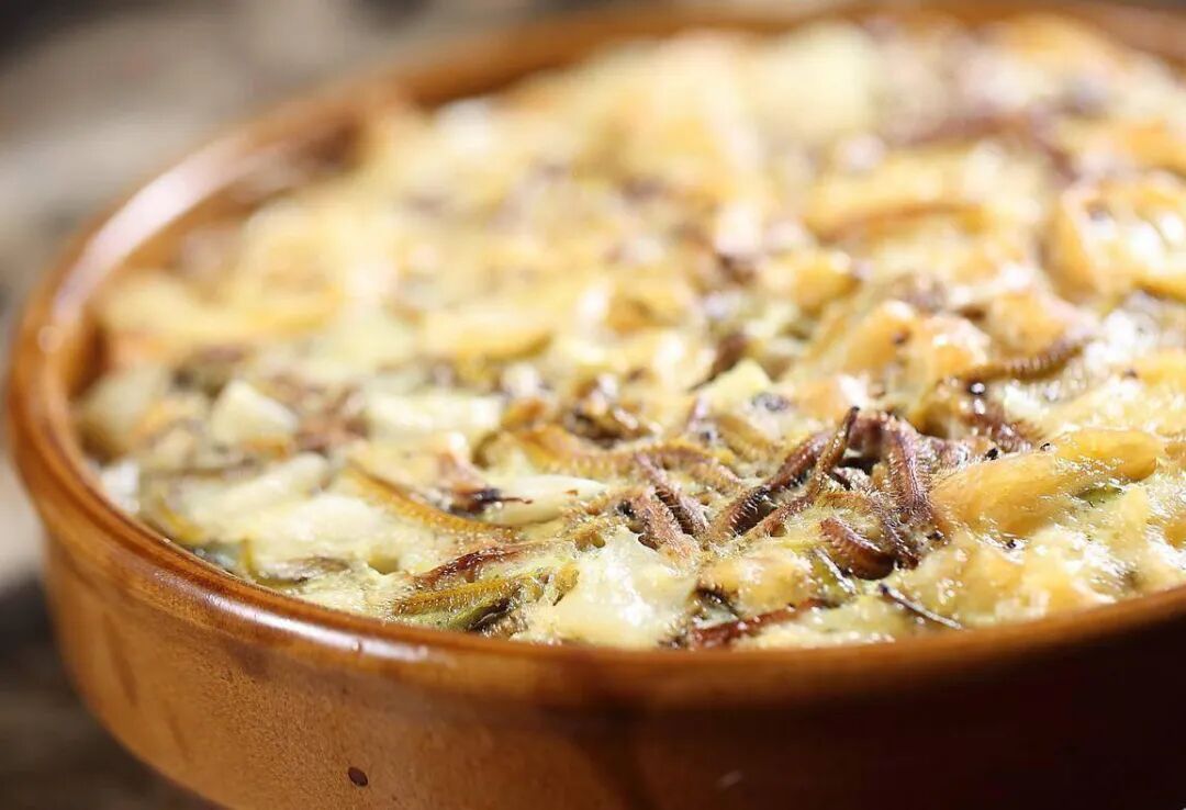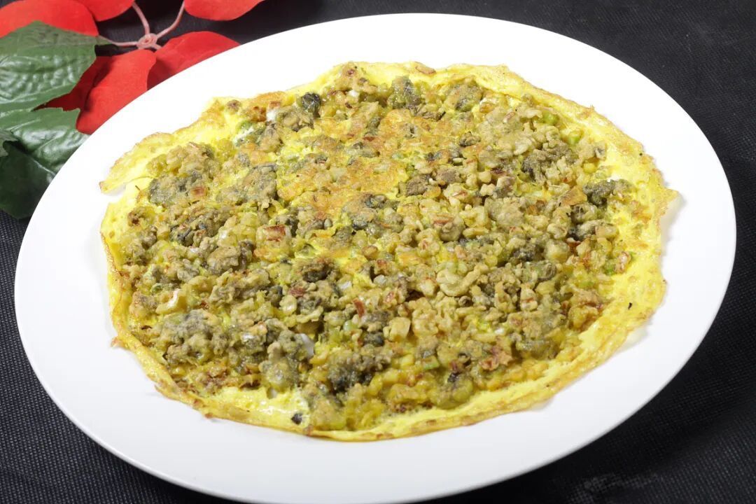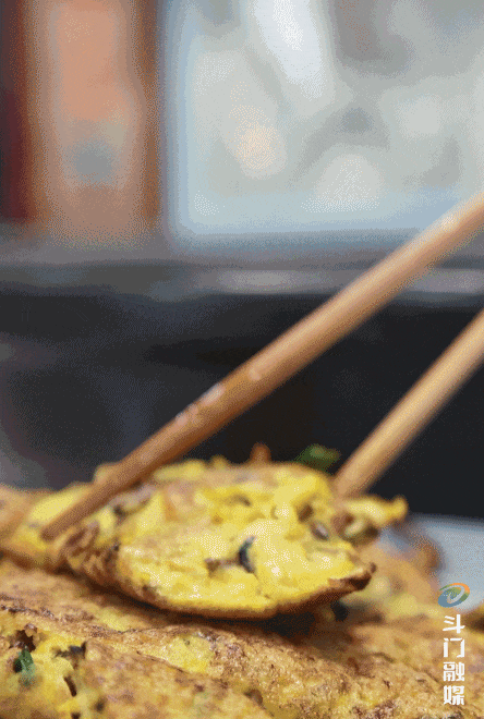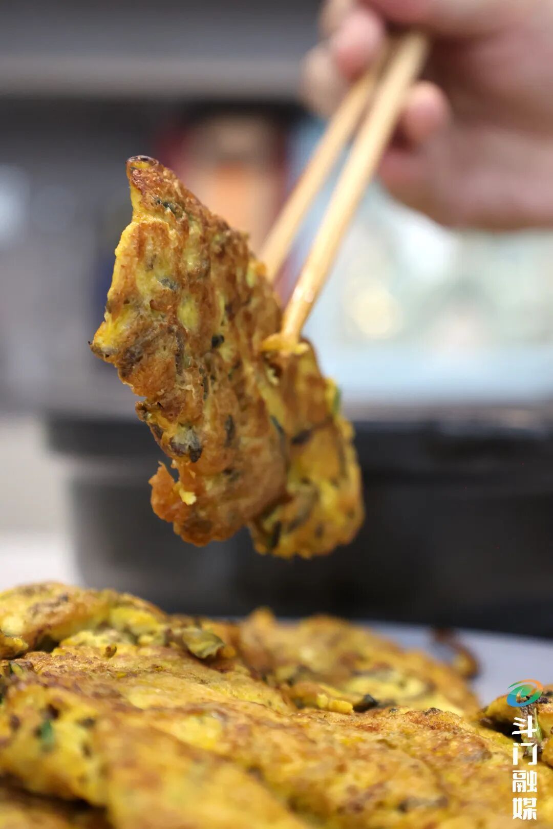瓦蒸禾虫的余韵尚在,接下来便是禾虫煎蛋的登场时刻。厨师将小半碗禾虫拌入鸡蛋液,热油煎制,焦香弥漫厨房。