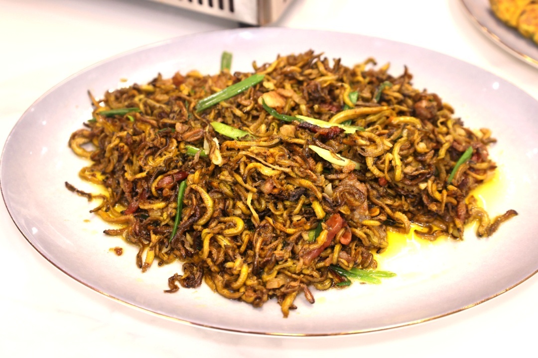 招牌炒禾虫香气扑鼻,外脆里嫩,清爽不腻;禾虫煎蛋焦香与蛋香交融,嫩滑可口,每一口都超满足。