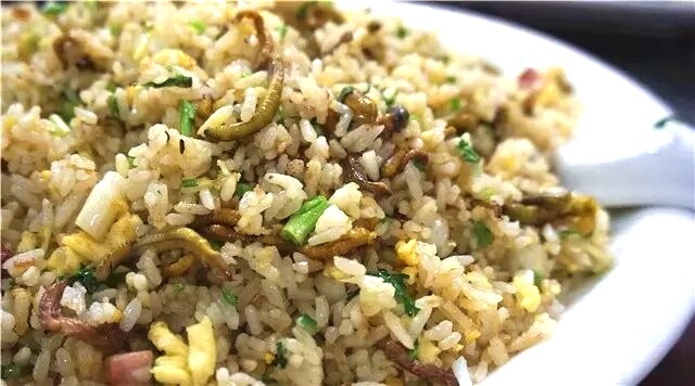 莲洲小镇有家30年老店,以一道“禾虫炒饭”成为“乡味招牌”。柴火灶慢炒,米饭粒粒裹满金黄禾虫,做法虽简却香绝,是当地人常去的“禾虫食堂”。