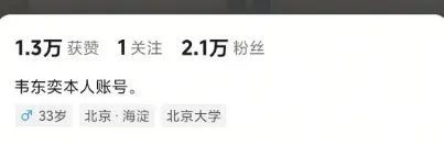 6月6日,有网友在短视频平台发现一用户名为“韦东奕”的账号,疑似是北大“韦神”本人。这个账号在简介中称系“韦东奕本人账号”。