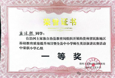 辛勤耕耘,终见硕果。2025年3月,她辅导的冉玫老师在沿河县小学第三教育集团组织的优质课评选中斩获一等奖,实现了该校该项目零的突破;两个月后,她指导的学生冉沐熙在县级英语演讲比赛中夺冠,再次刷新学校纪录。