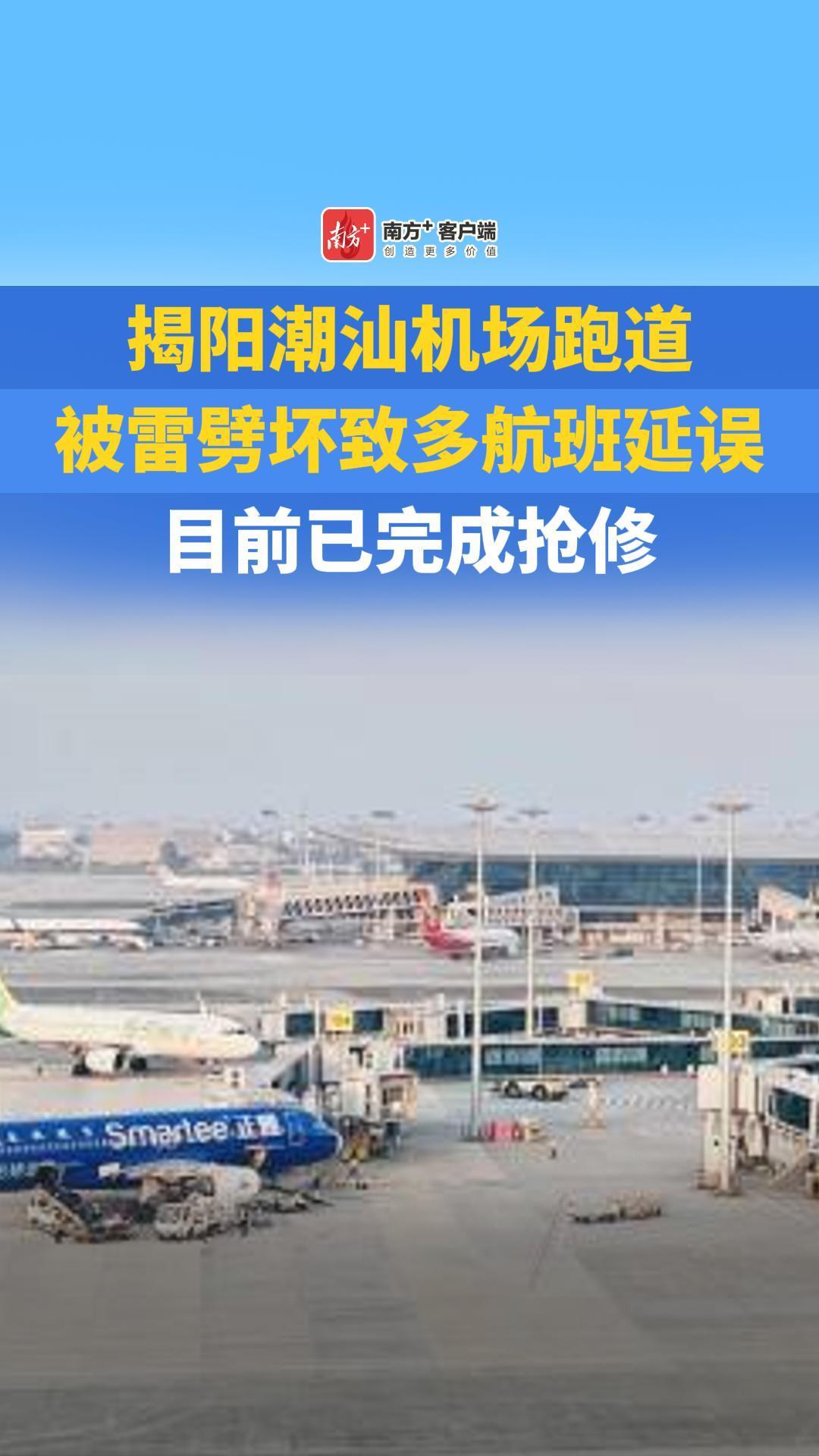 揭阳潮汕机场跑道被雷劈坏致多航班延误,目前已完成抢修