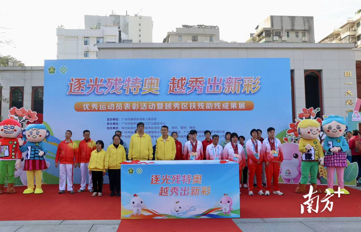 12月16日下午,由广州市越秀区残疾人联合会主办、广州市越秀区康园工疗站服务中心承办的“逐光残特奥,越秀出新彩”优秀运动员表彰活动暨越秀区扶残助残成果展在团一大广场隆重举办。活动以精准展示与互动实践,集中呈现越秀区残疾人事业高质量发展的阶段性成果。