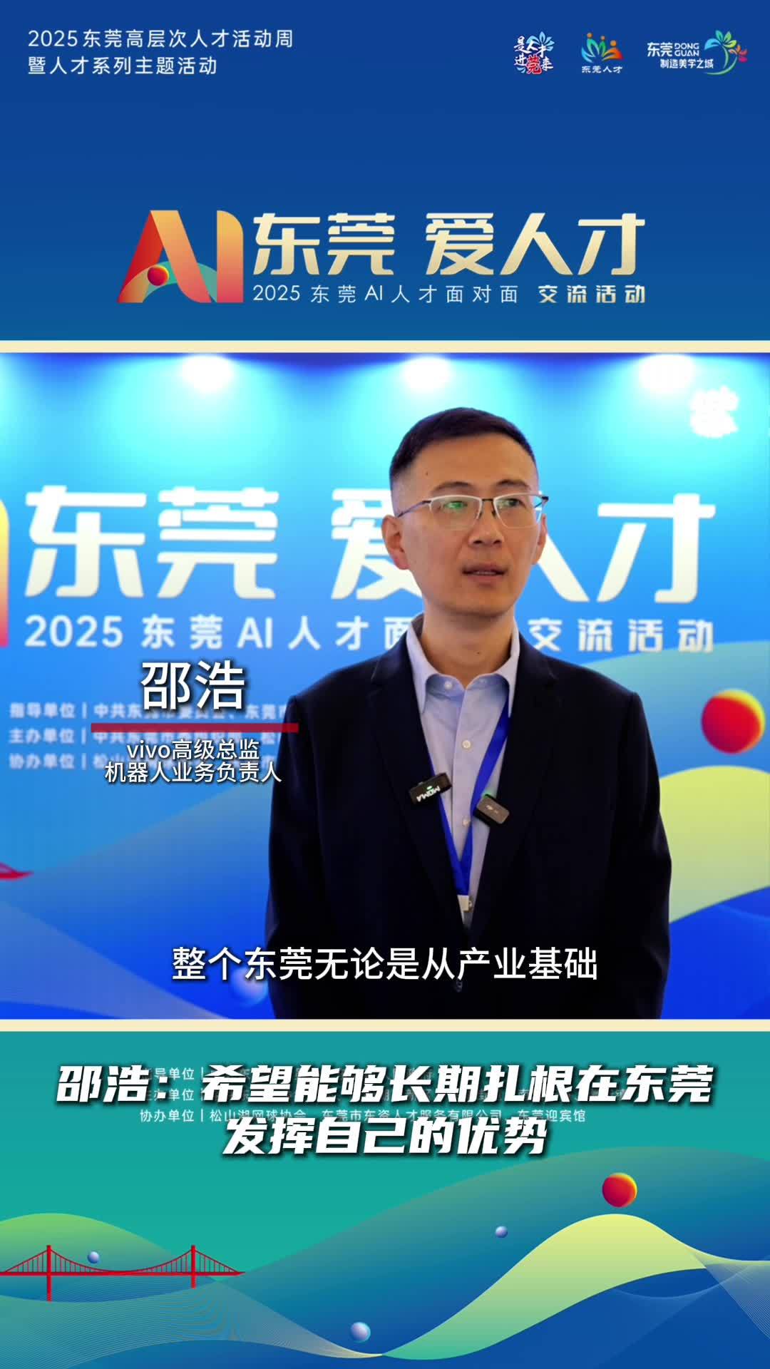 邵浩指出,东莞提出的“是人才 进莞来”口号,不仅体现了城市对人才的重视,更反映出其在产业配套与创新环境方面的综合实力。作为手机与机器人领域的从业者,他期待能在这一充满活力的城市中,持续推动产品创新,为用户提供更优质的智能终端与机器人产品。