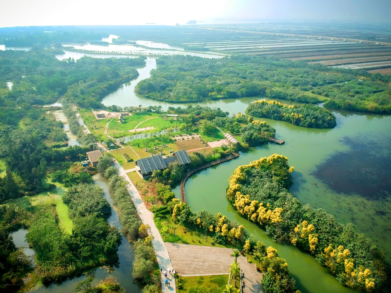 大湾区中央湿地公园是珠三角地区重要的滨海湿地生态系统,通过系统修复红树林、优化栖息地,显著提升生物多样性,遏制水质营养化趋势,创新构建生态科普管护体系,实现科教旅游收益反哺生态保护,体现生态效益与经济效益双赢。