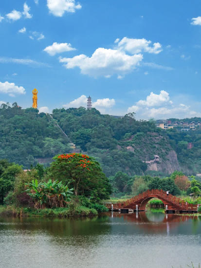 凤举湖源于老旧采石场深坑的改造升级,南沙区秉持“河湖连通,以水定城”的核心理念,让昔日废弃矿坑完成“从无到有”的活水注入、“从涝到蓄”的海绵化转型。叠加文化、旅游等多元元素赋能,如今的湖区已成为集景观观赏、特色文化科普于一体的主题公园。