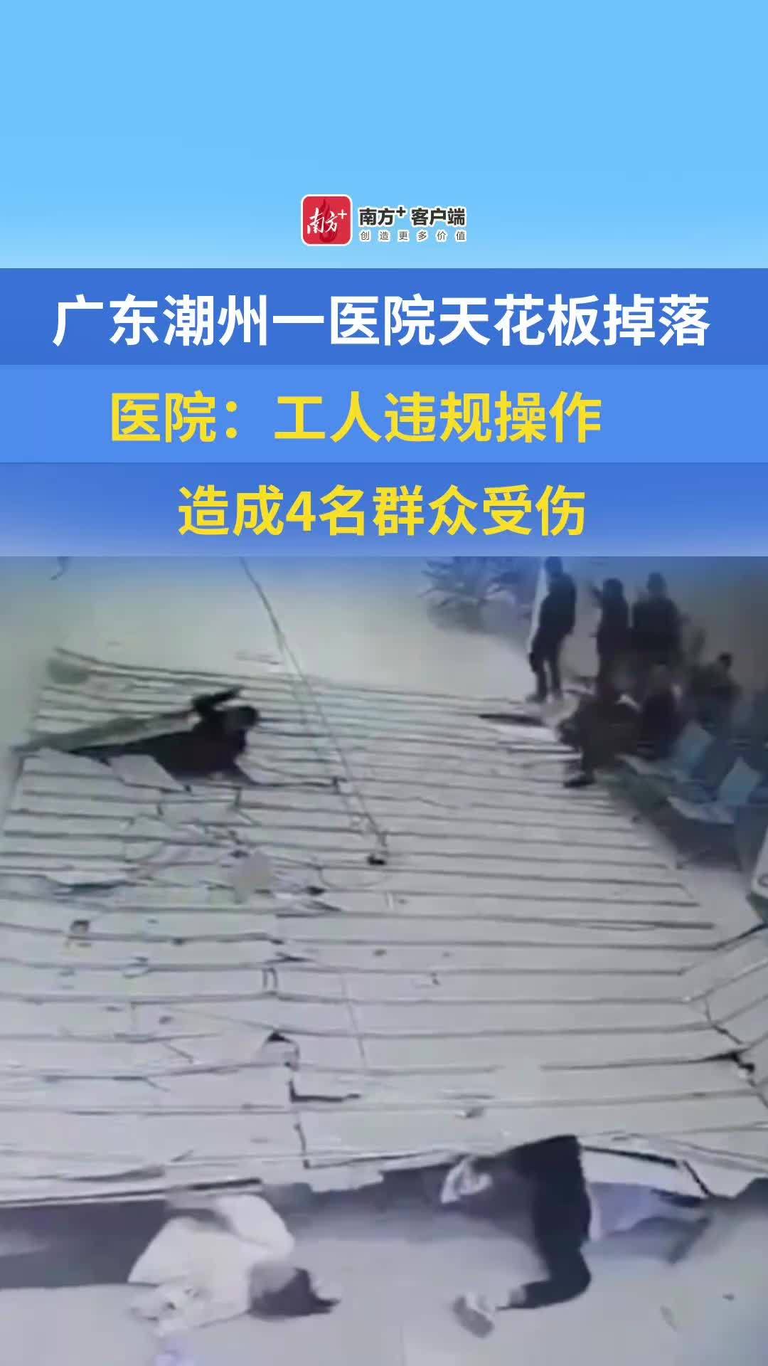 广东潮州一医院天花板掉落,医院:工人违规操作,造成4名群众受伤