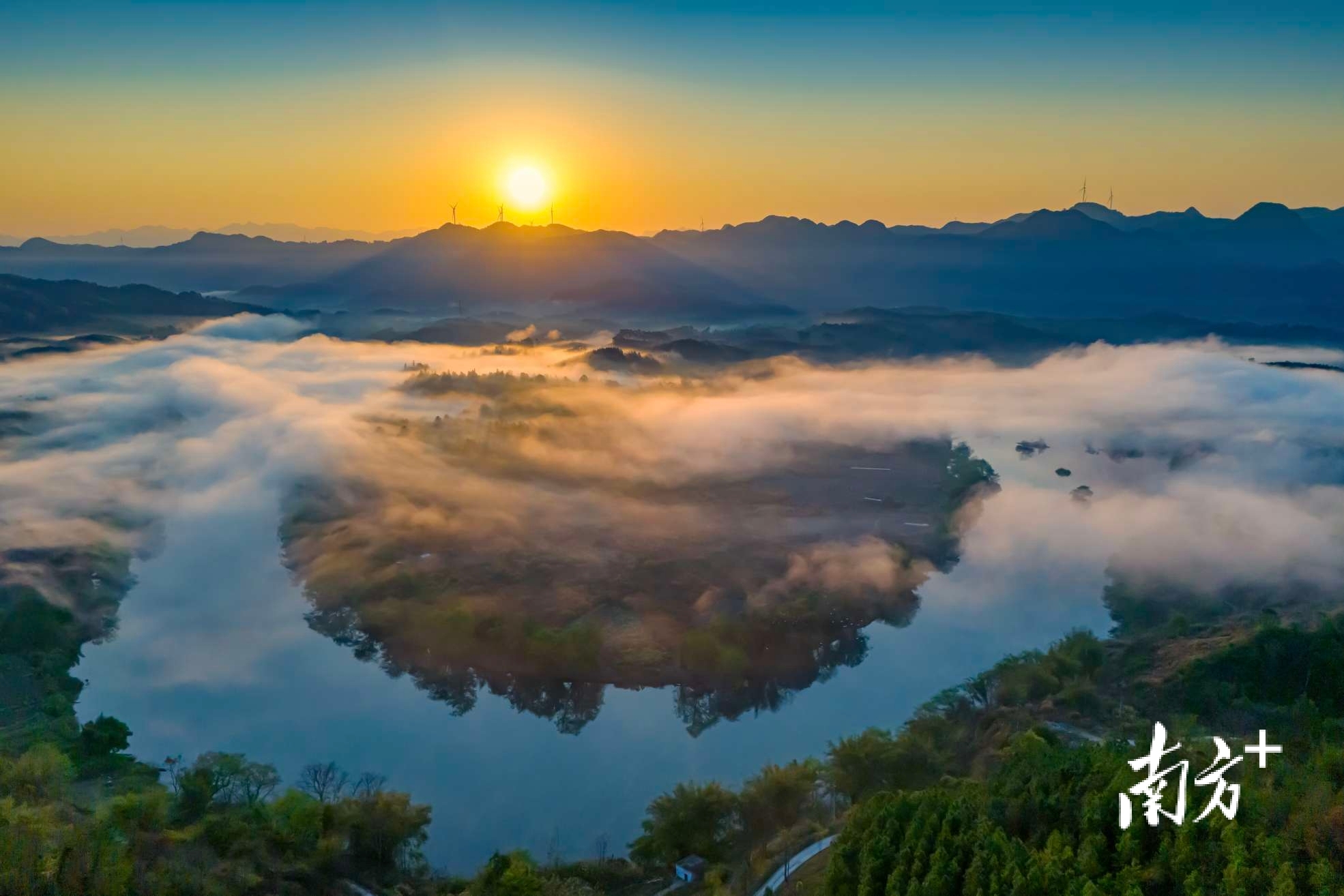 3月20日,连州市保安镇水口村日出晨雾。南方+拍客 罗敏 摄