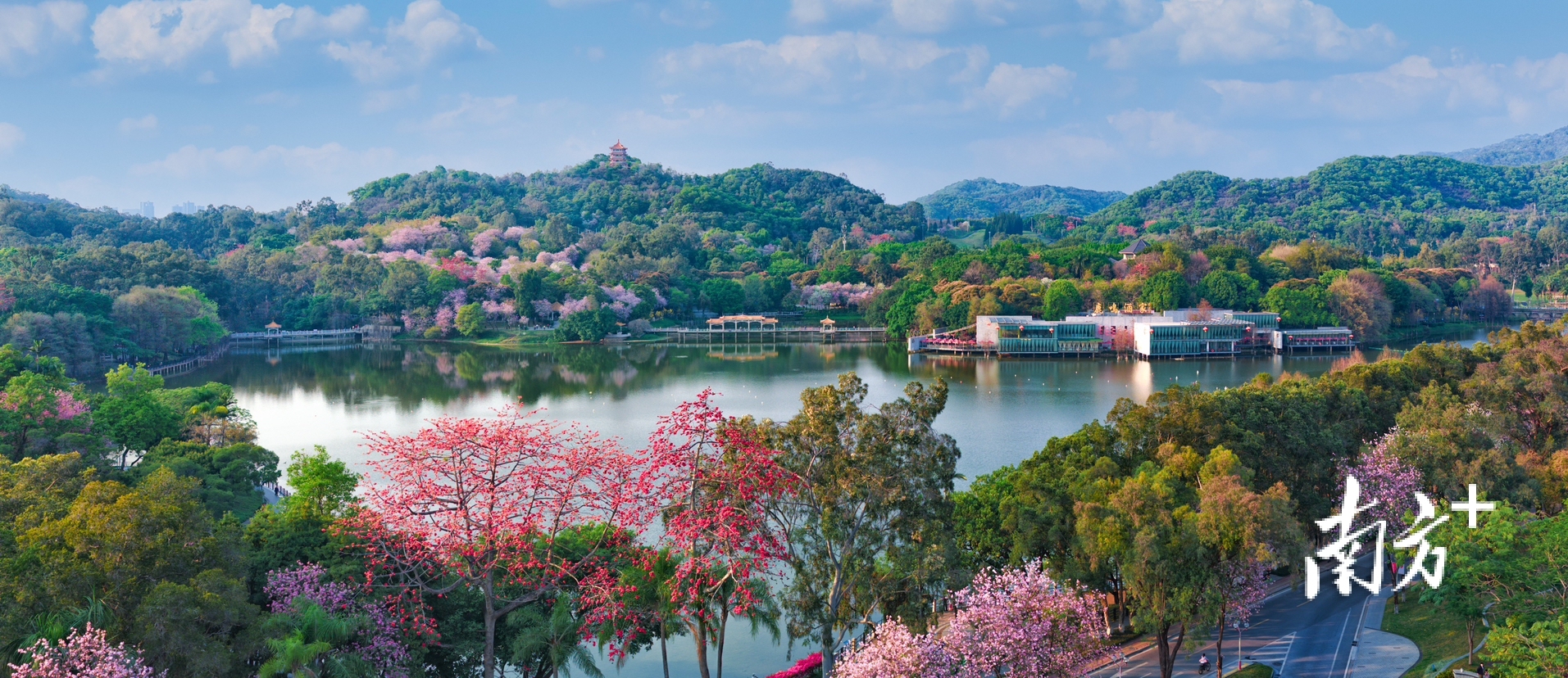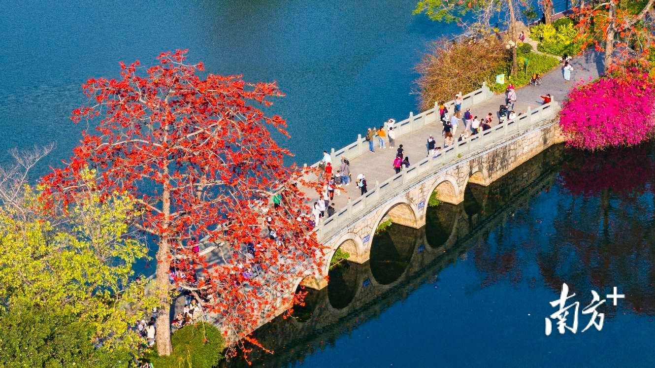 广州麓湖公园,木棉花、紫荆花竞相盛放,湖光花影两相融。南方+拍客 张宁 摄