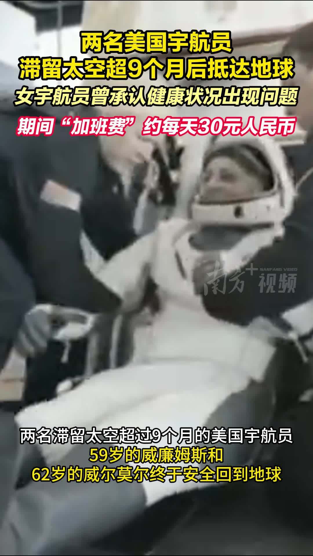 两名美国宇航员滞留太空超9个月后抵达地球,期间“加班费”约每天30元人民币