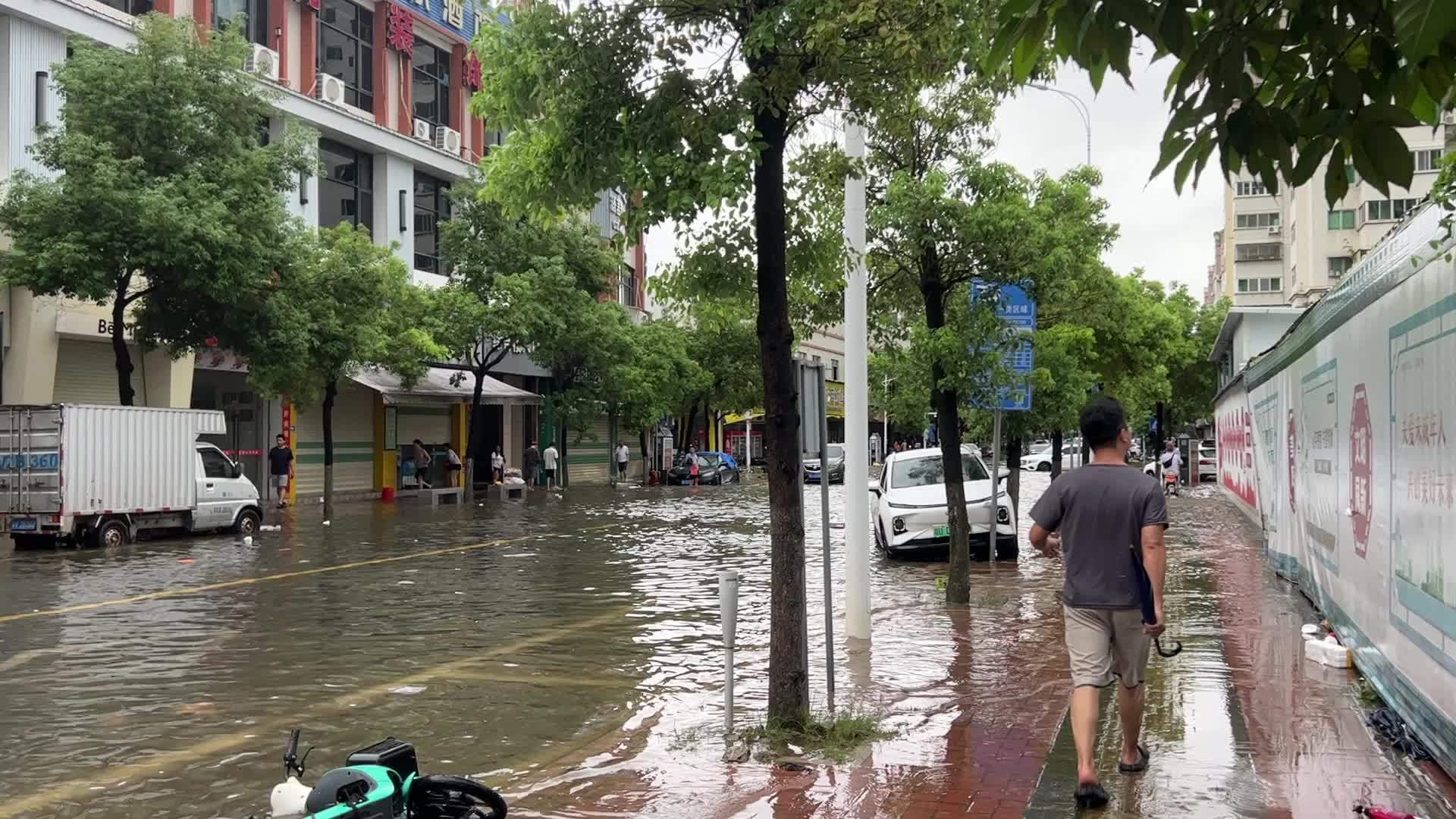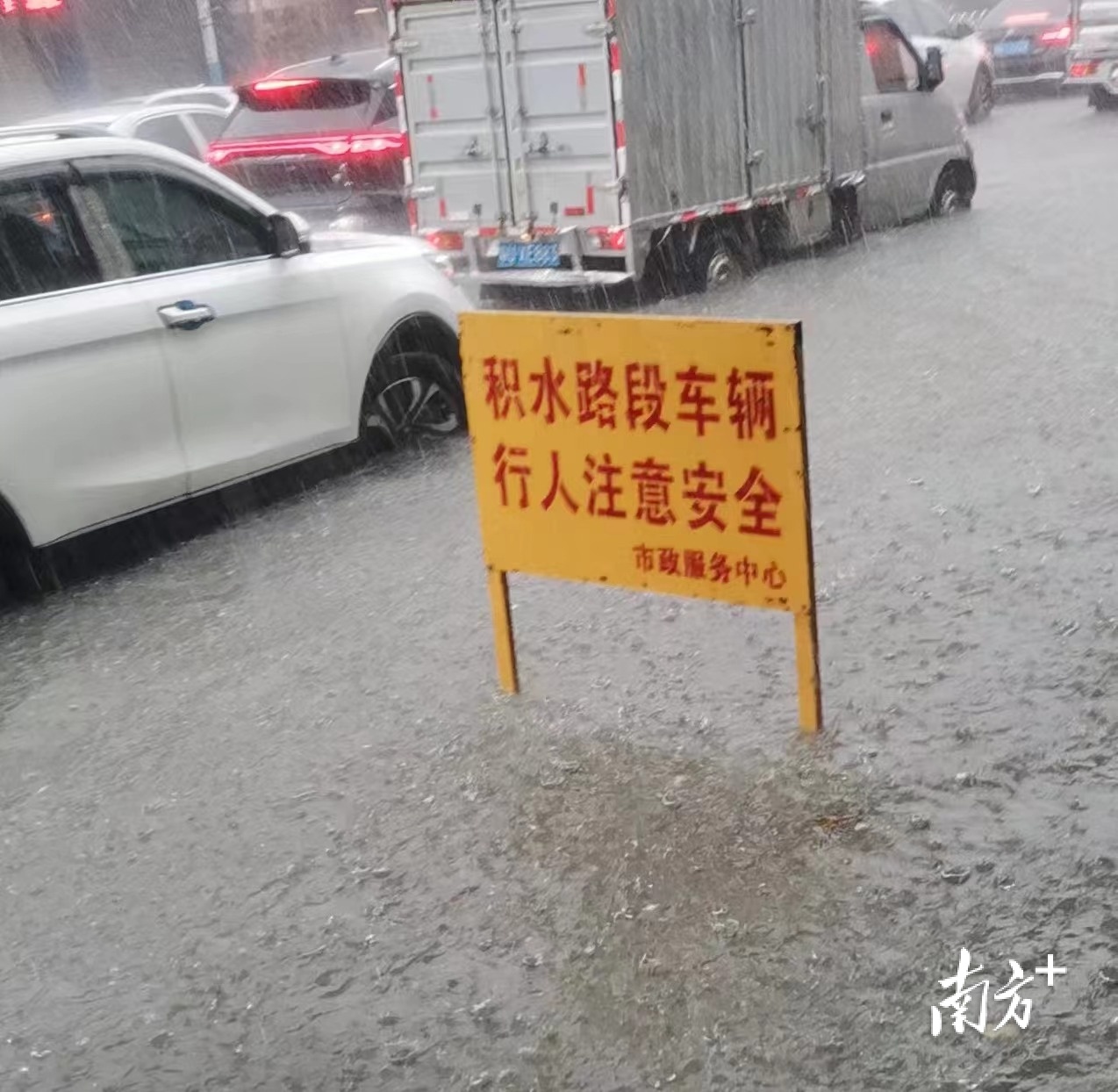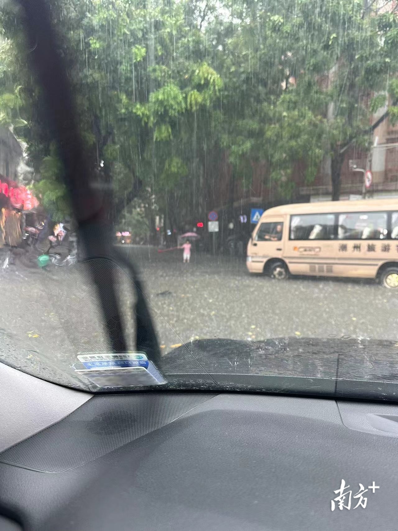 受短时强降雨影响,潮州市区部分路段出现积水,出行时请注意安全。