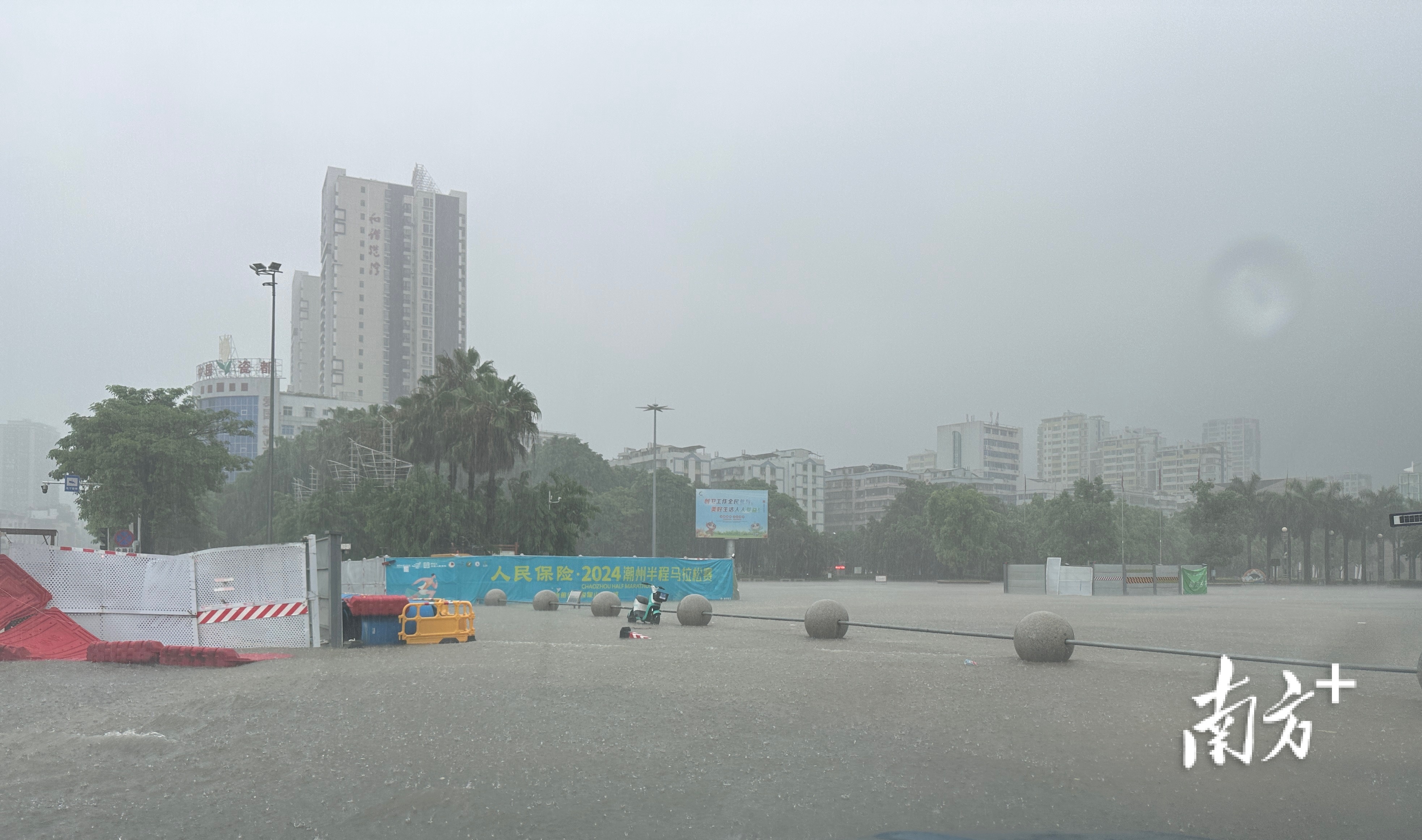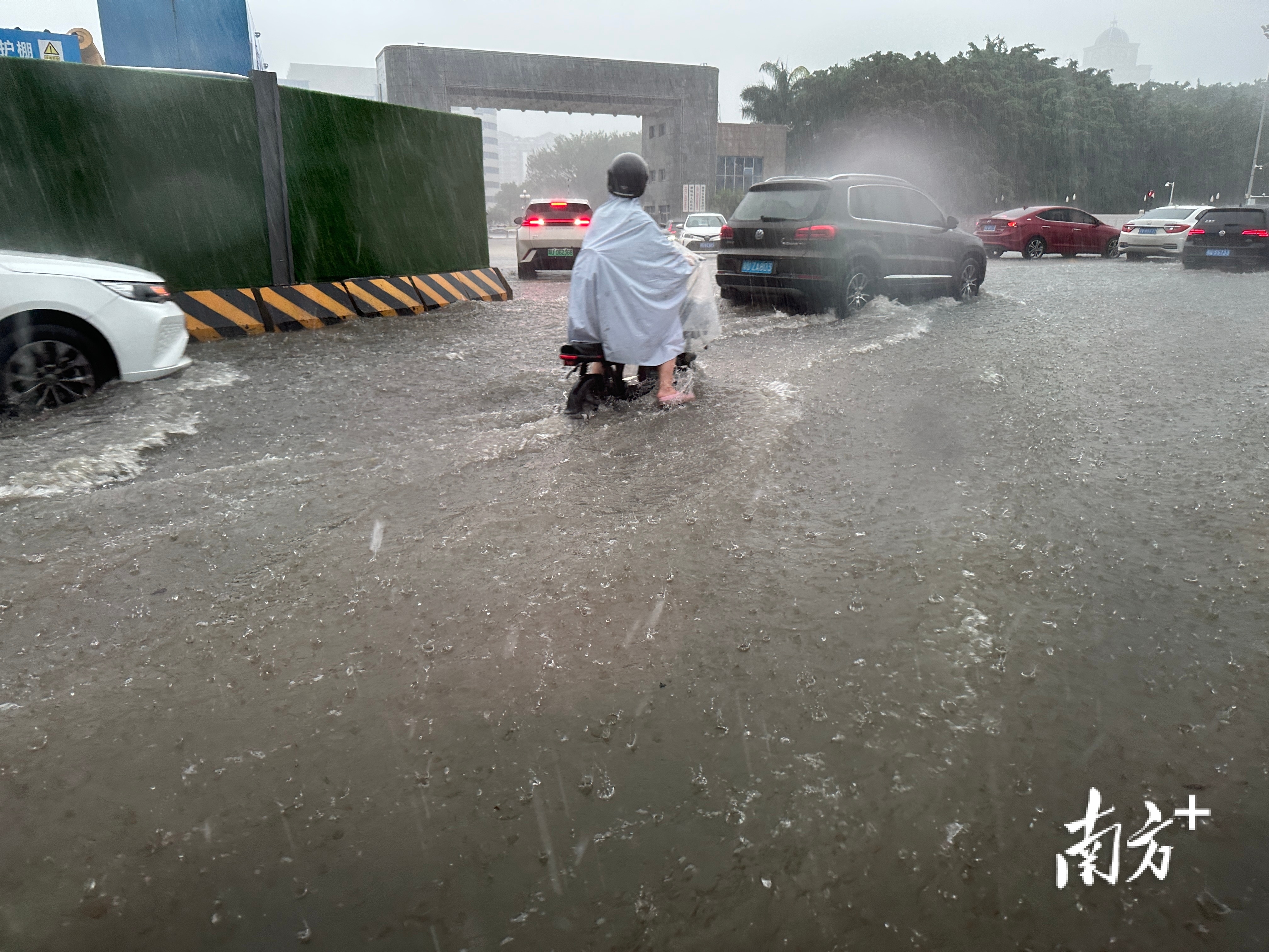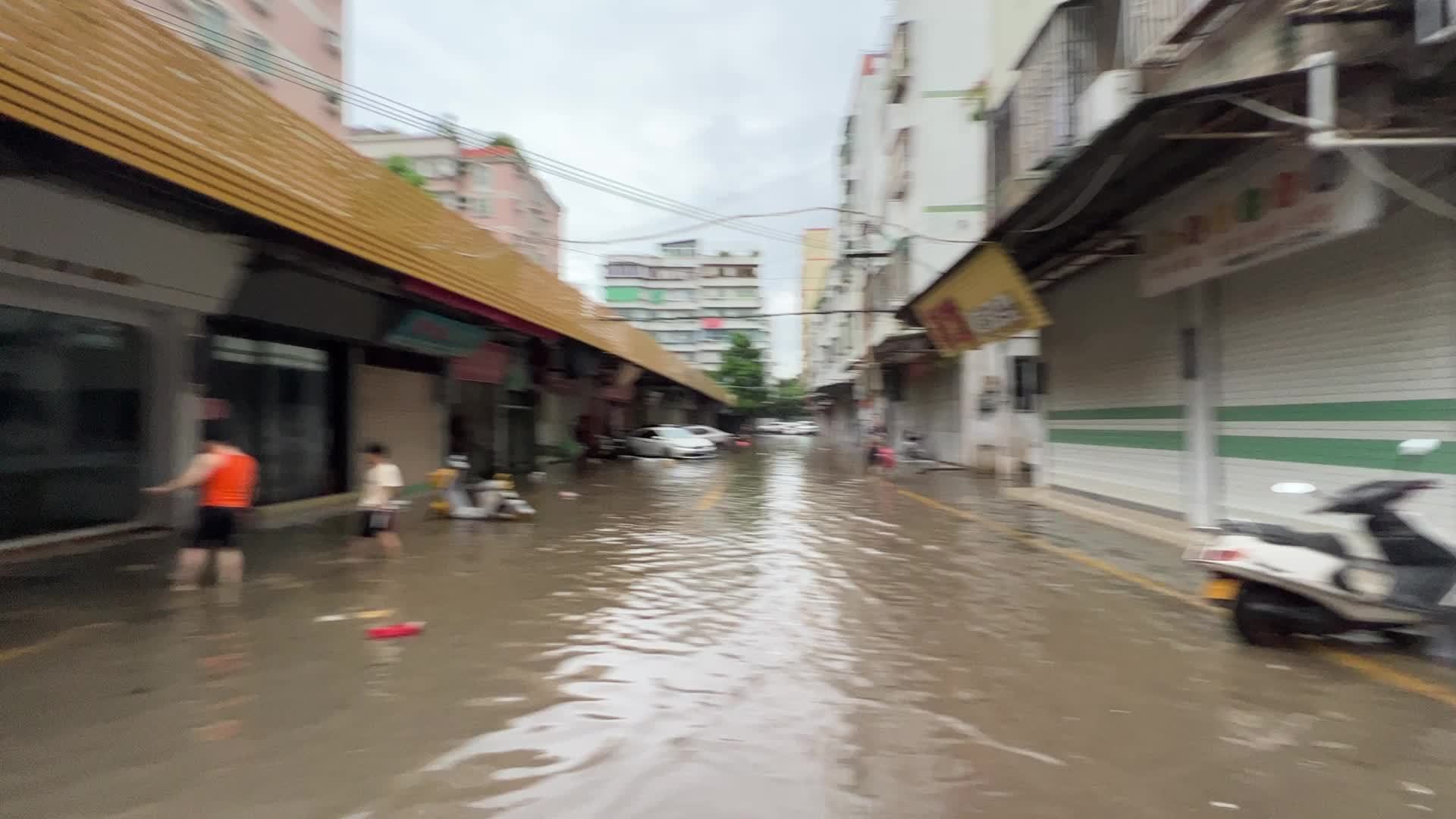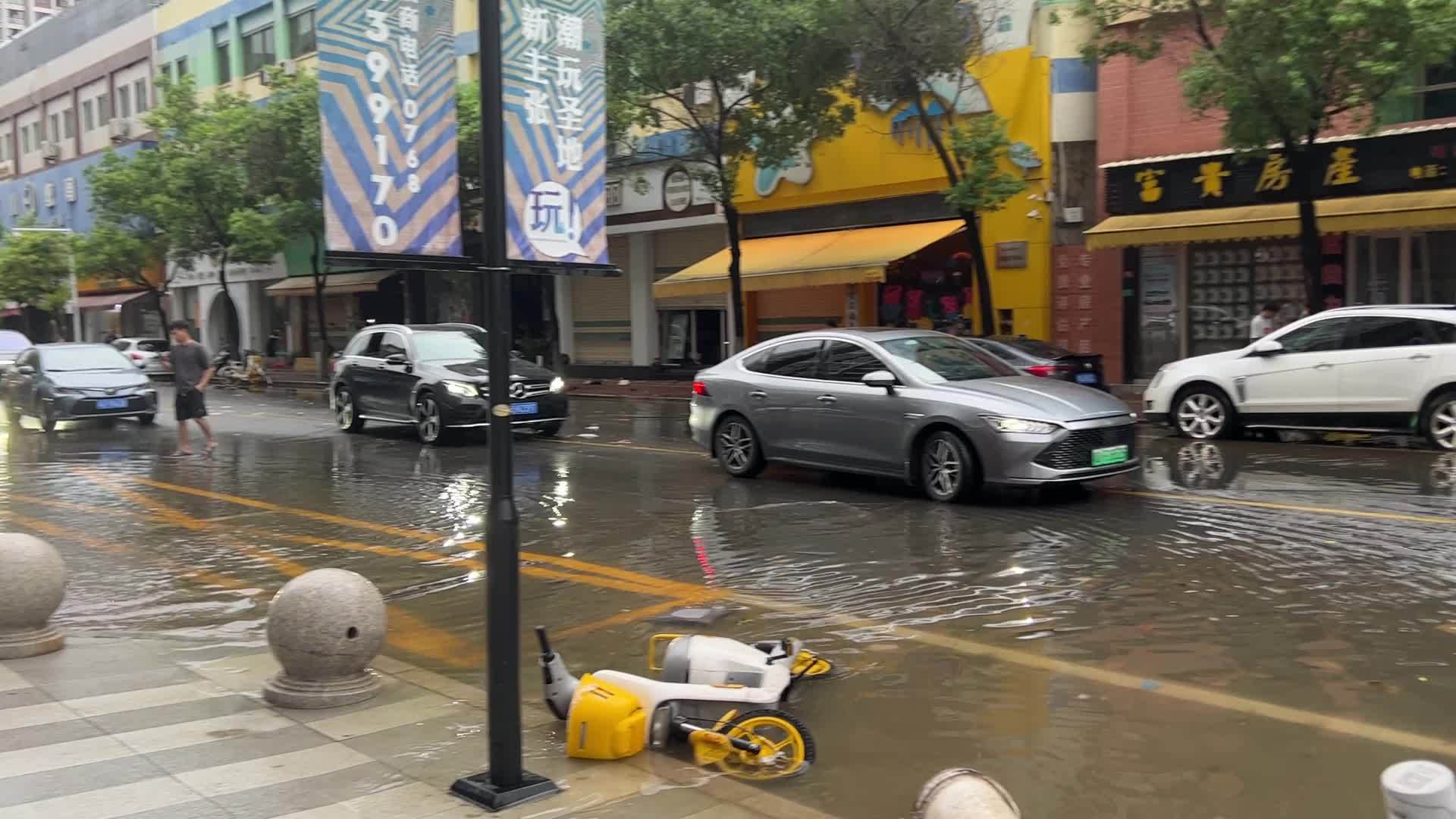 受短时强降雨影响,潮州市区部分路段出现积水,出行时请注意安全。