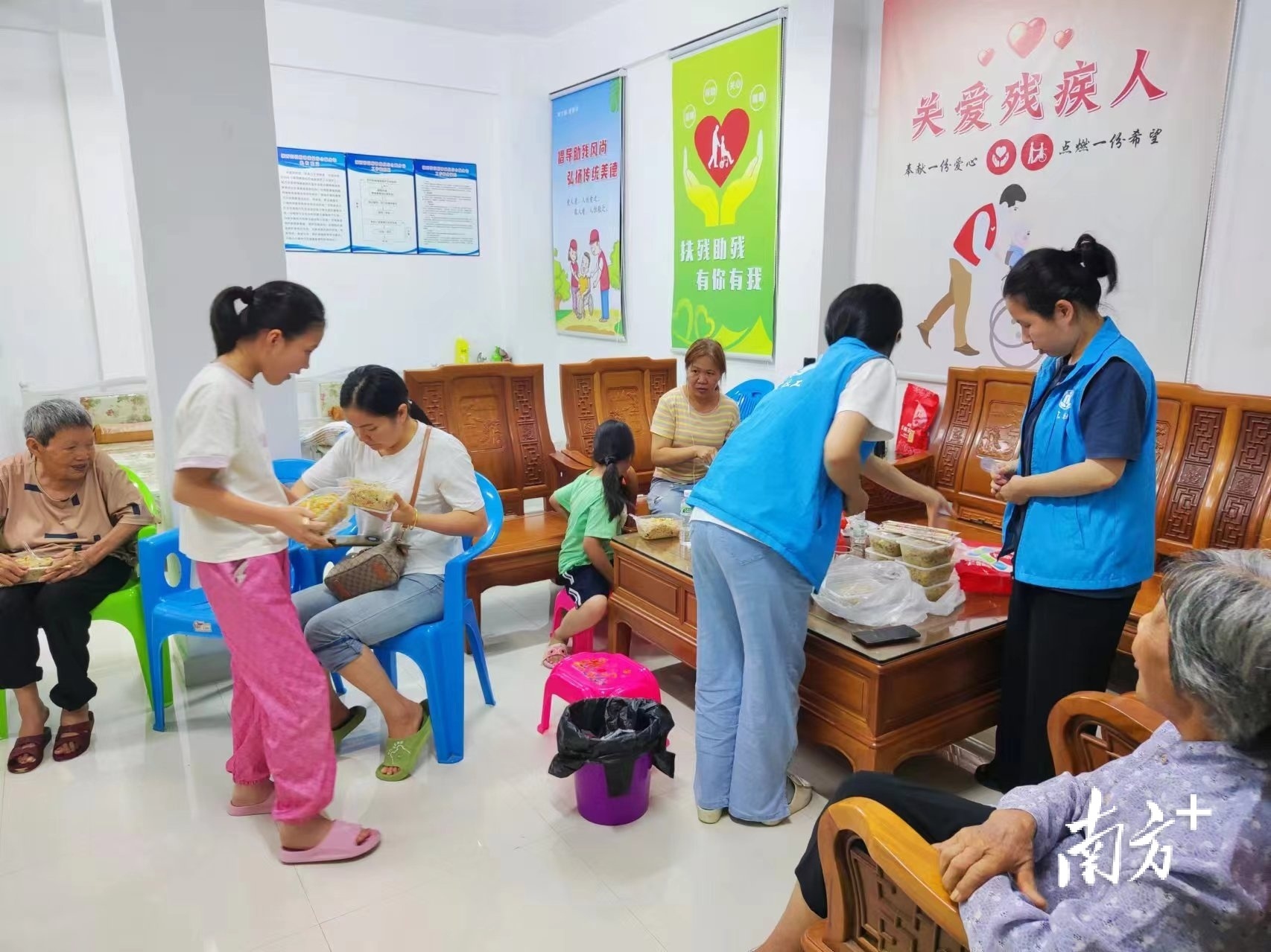 “双百”社工和民政工作人员送午餐到安置点给群众。