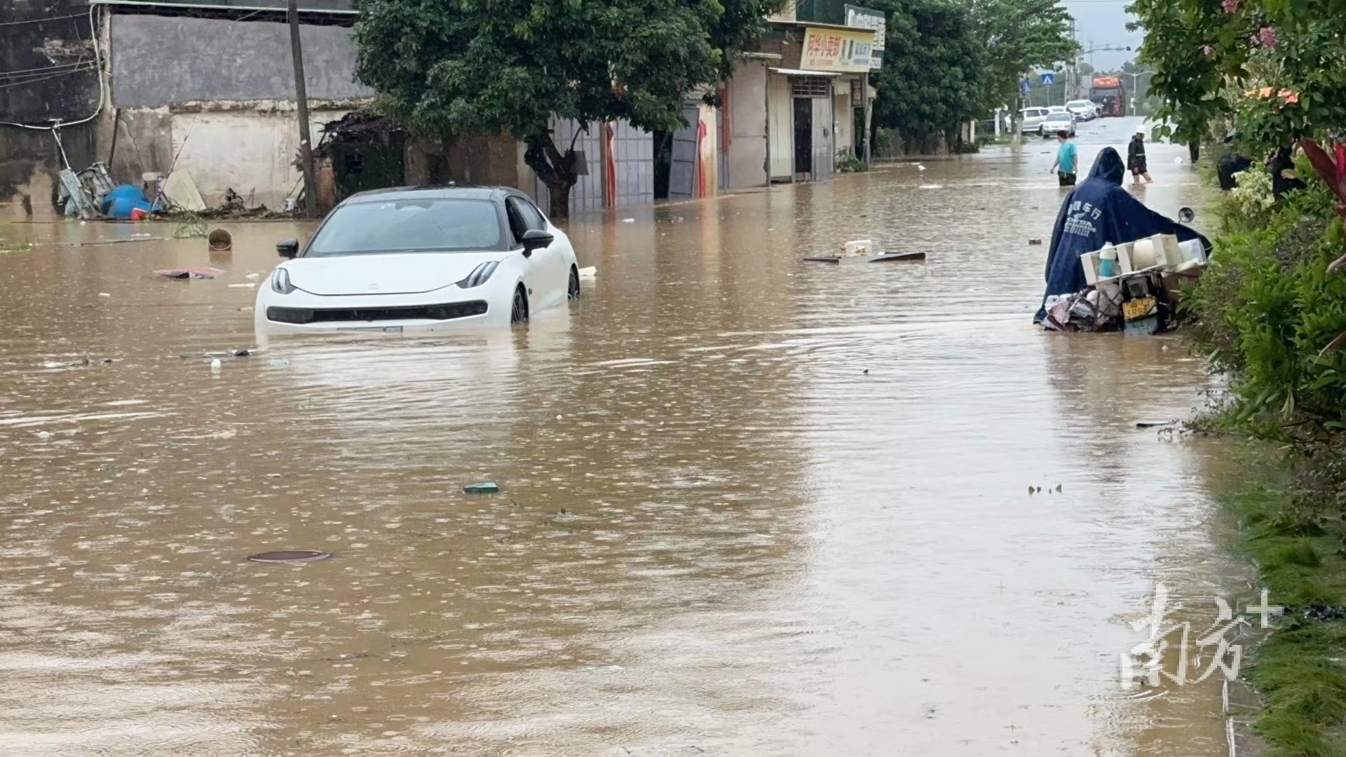 潮州多路段积水严重,有车辆几乎被淹至车顶