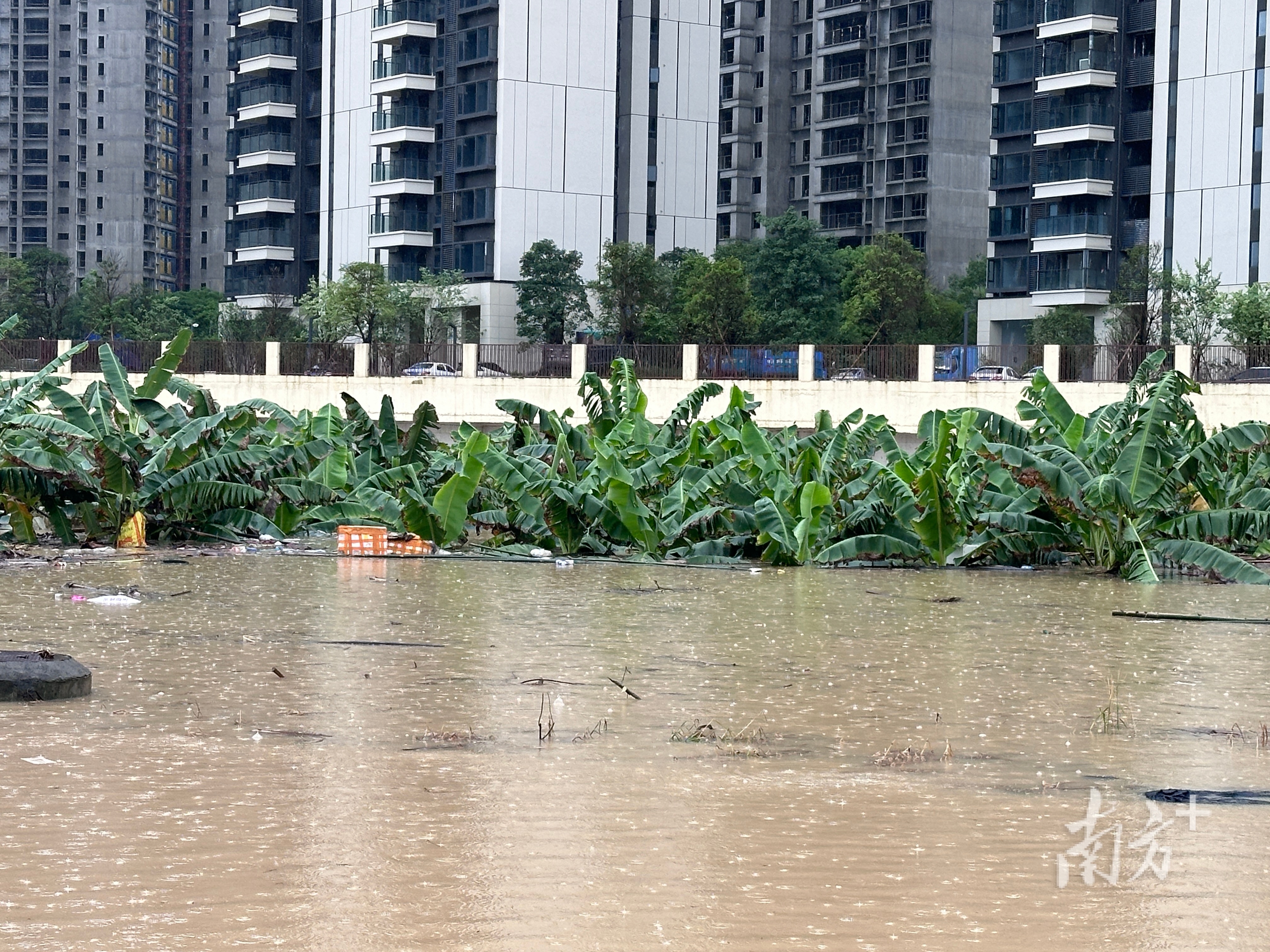 7月26日下午,受台风“格美”影响,潮州市大范围大暴雨,市区内涝严重,当晚,潮州湘桥防汛应急响应提升为Ⅰ级。意溪河内片区是市区内涝最为严重片区之一。记者跟着救援队深入意溪镇河内片区看到,大部分房屋、厂房、农田已被淹没,以往高大挺拔的行道树也只剩树冠露出水面,冲锋舟穿行其中仿佛进入“水上森林”。