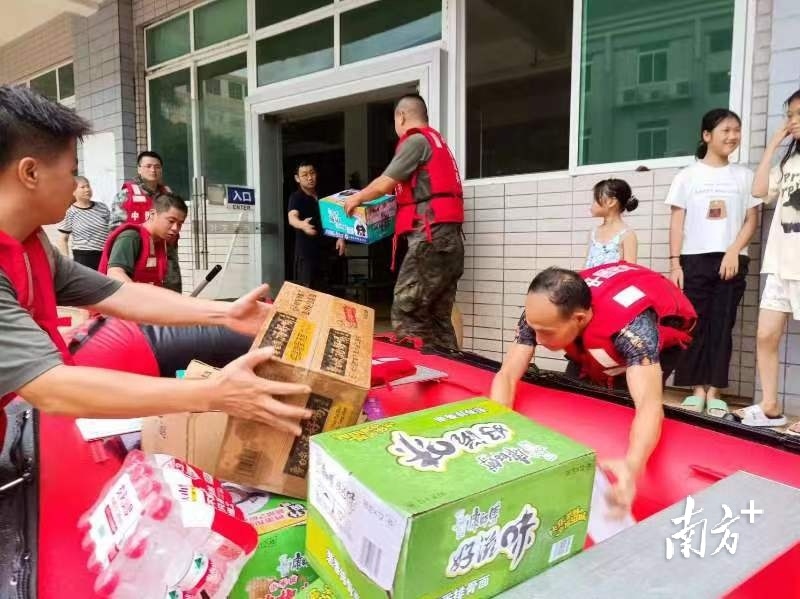 由于车辆无法通行,各村生活物资十分紧张。对此,意溪镇通过在镇区商铺就近购买和市区调货等渠道加紧筹集物资,并组织人员为受困群众“送货上门”。小面包、方便面、牛奶、盒饭……当工作人员开着冲锋舟载着物资来到村民住处楼下,喊一声“物资来啦”,村中孩童便闻讯奔跑而来。当地村民表示,“家中余粮快吃完了,还好镇、村不断有补给送来,希望汛情尽快结束。”截至目前,该镇累计运输药品、矿泉水、食品和应急灯等物资超300箱。