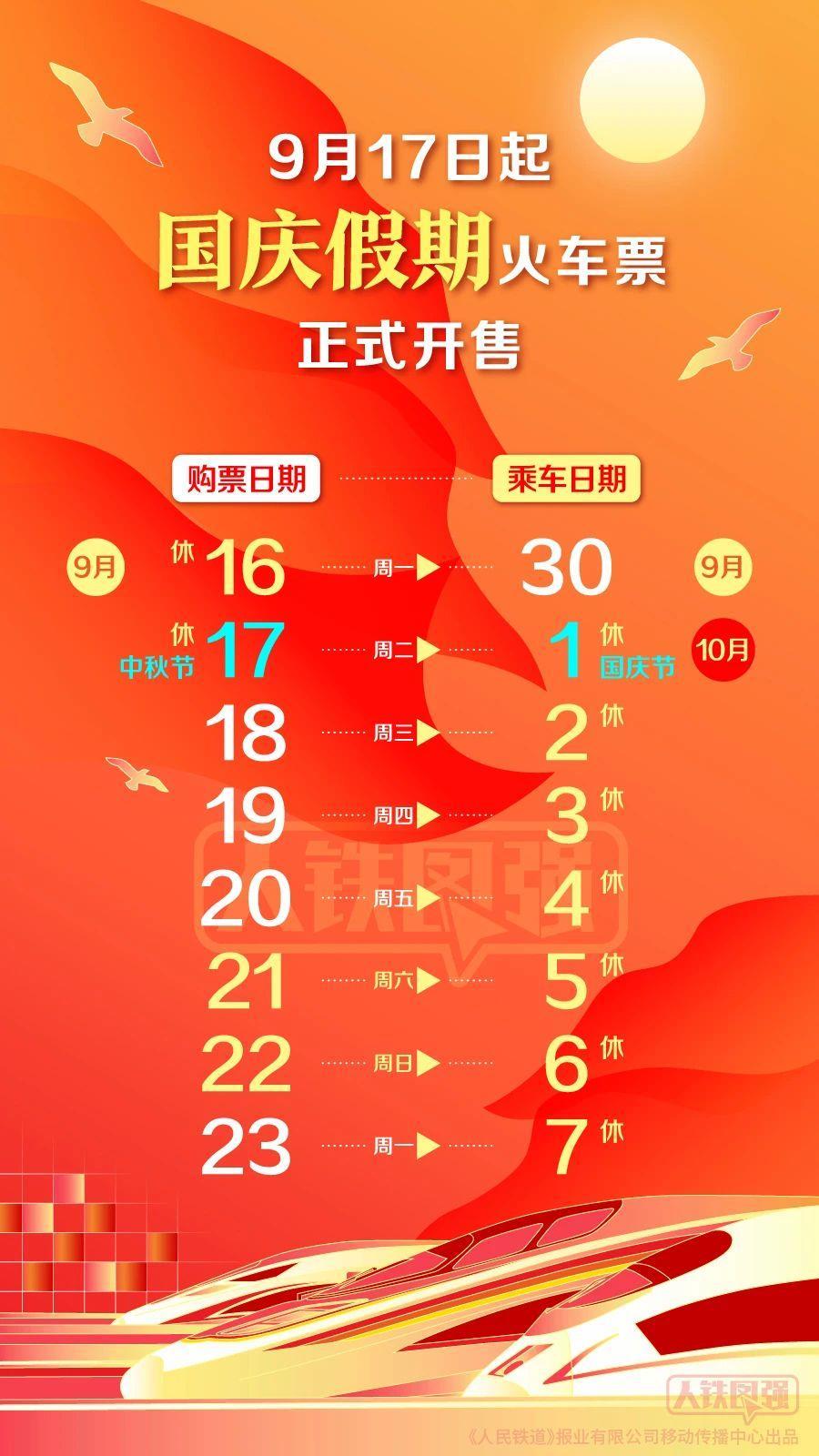 周知!10月1日火车票今天开售