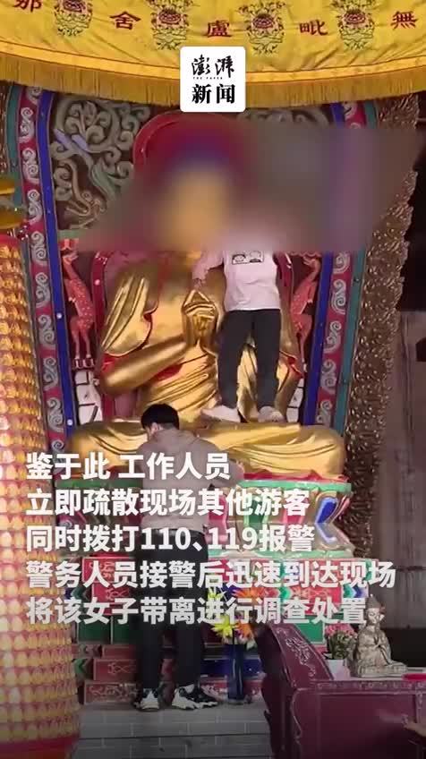 女游客爬佛像大喊“老子是活菩萨”被抓