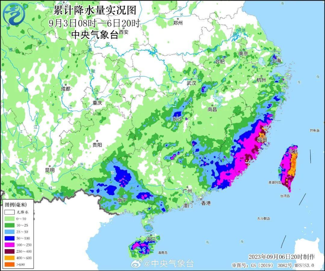 据监测,9月5日00时到9月7日12时,揭阳、汕尾、梅州、潮州累计雨量已经达到300毫米以上,揭阳揭西县南山镇358.7毫米、汕尾海丰县公平镇357.6毫米、梅州丰顺县埔寨镇341.6毫米、潮州潮安区凤凰镇336.4毫米、惠州惠东县高潭镇247毫米。