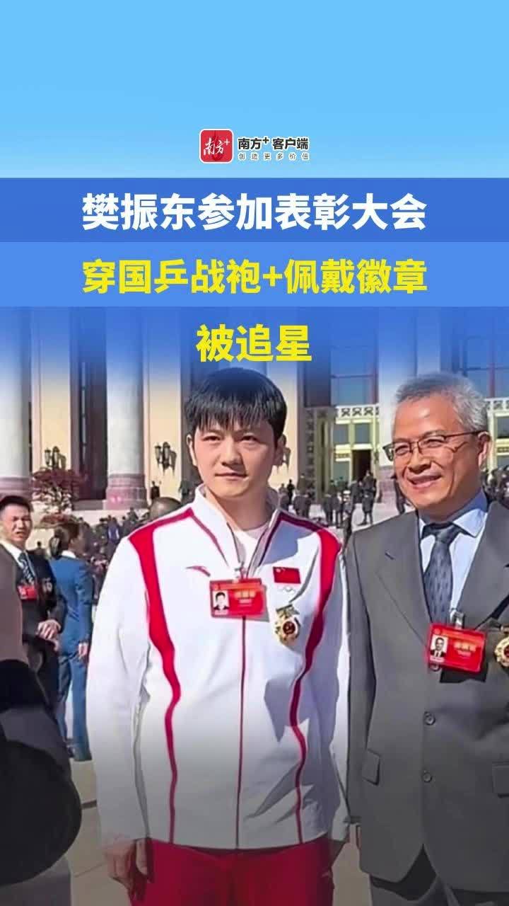 樊振东参加表彰大会,穿国乒战袍+佩戴徽章,被追星