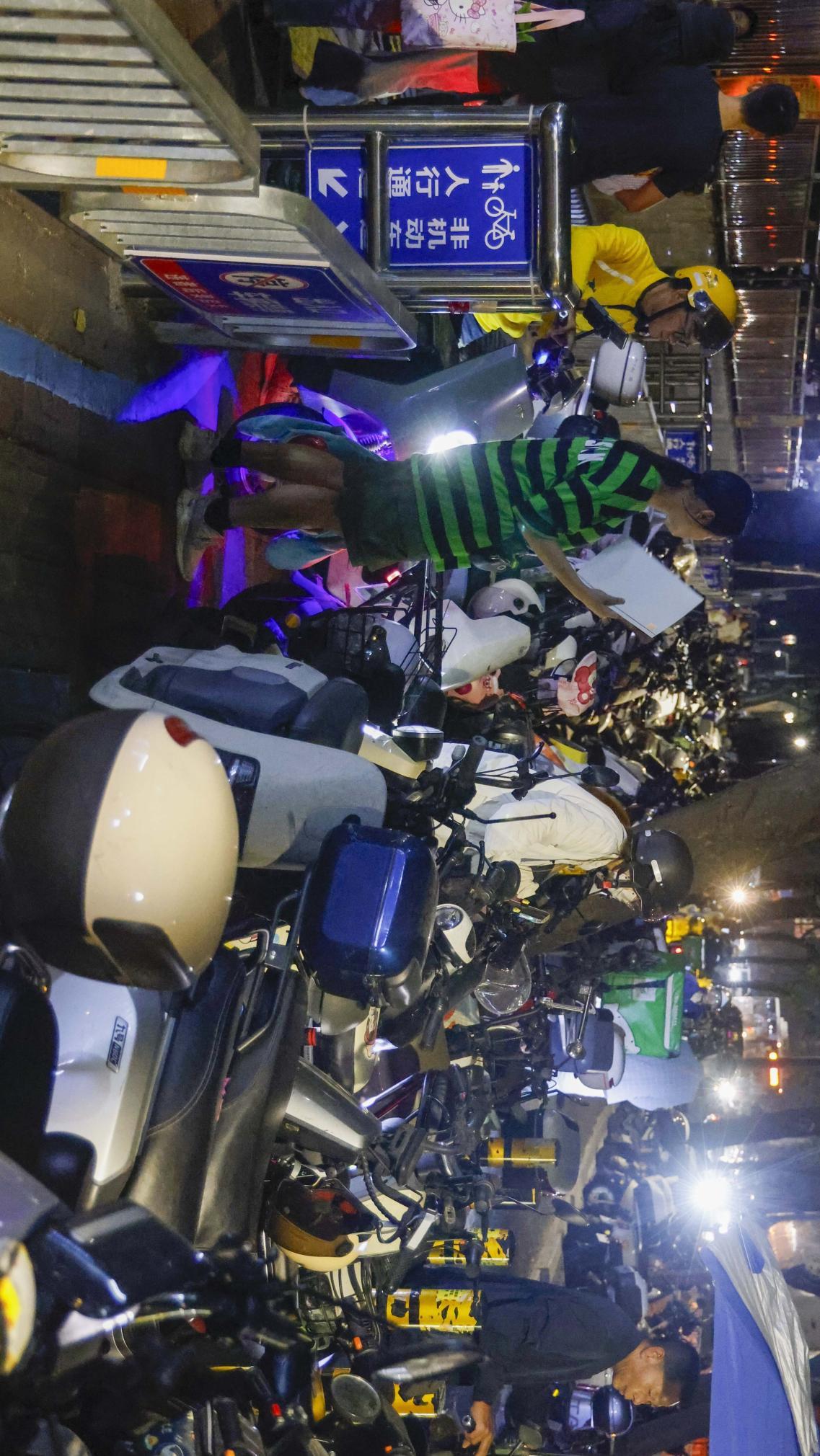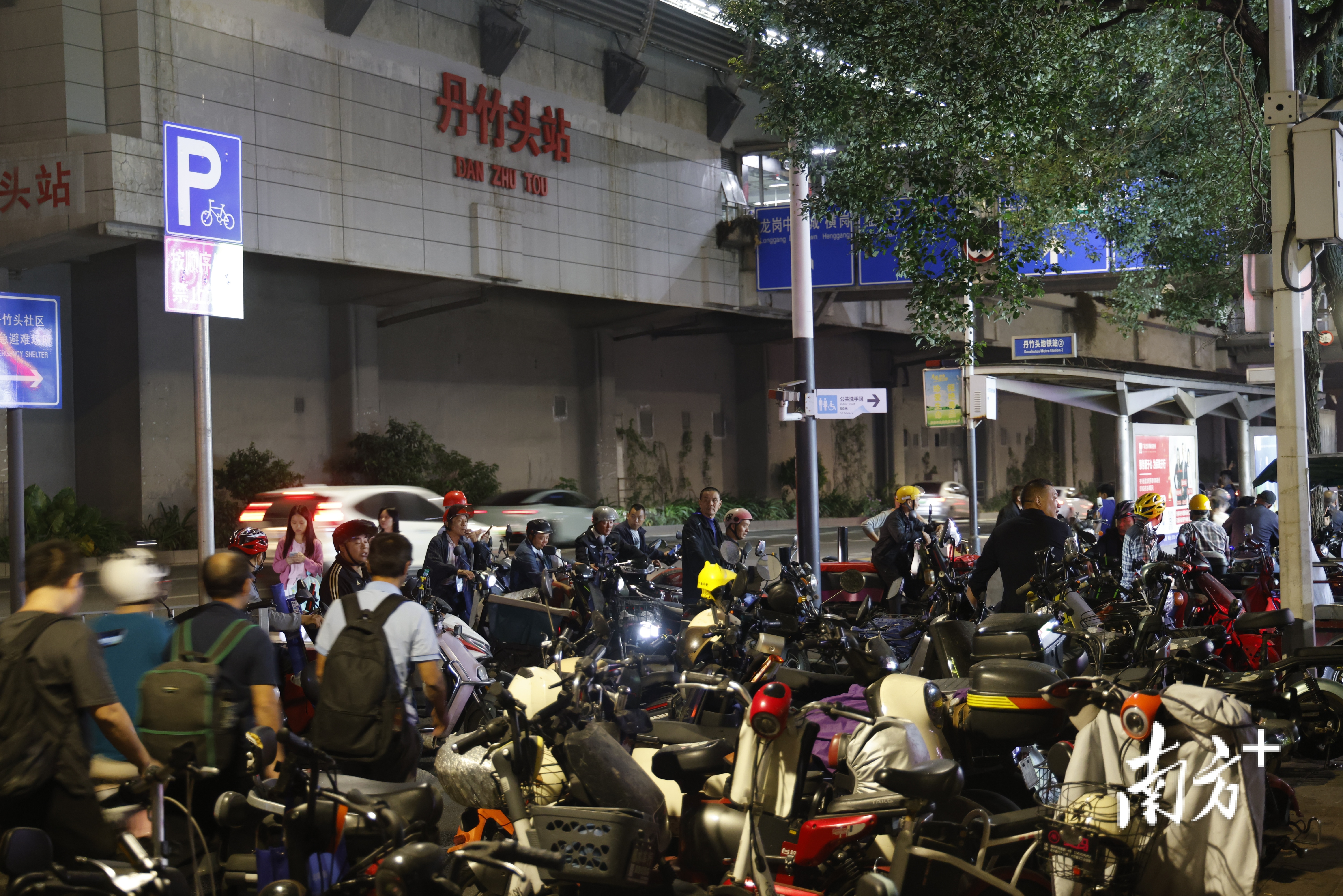 晚高峰,深圳丹竹头地铁站A出口,因道路被停放的电动自行车堵塞,骑电动自行车的市民只能排队通过路口。南方+记者 鲁力 摄