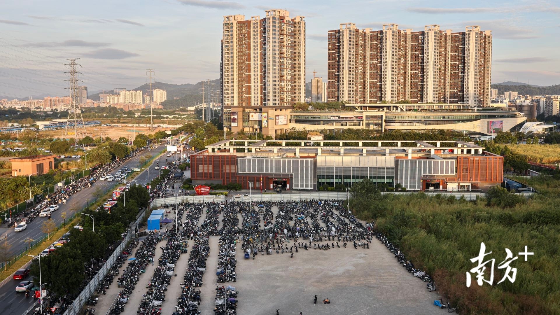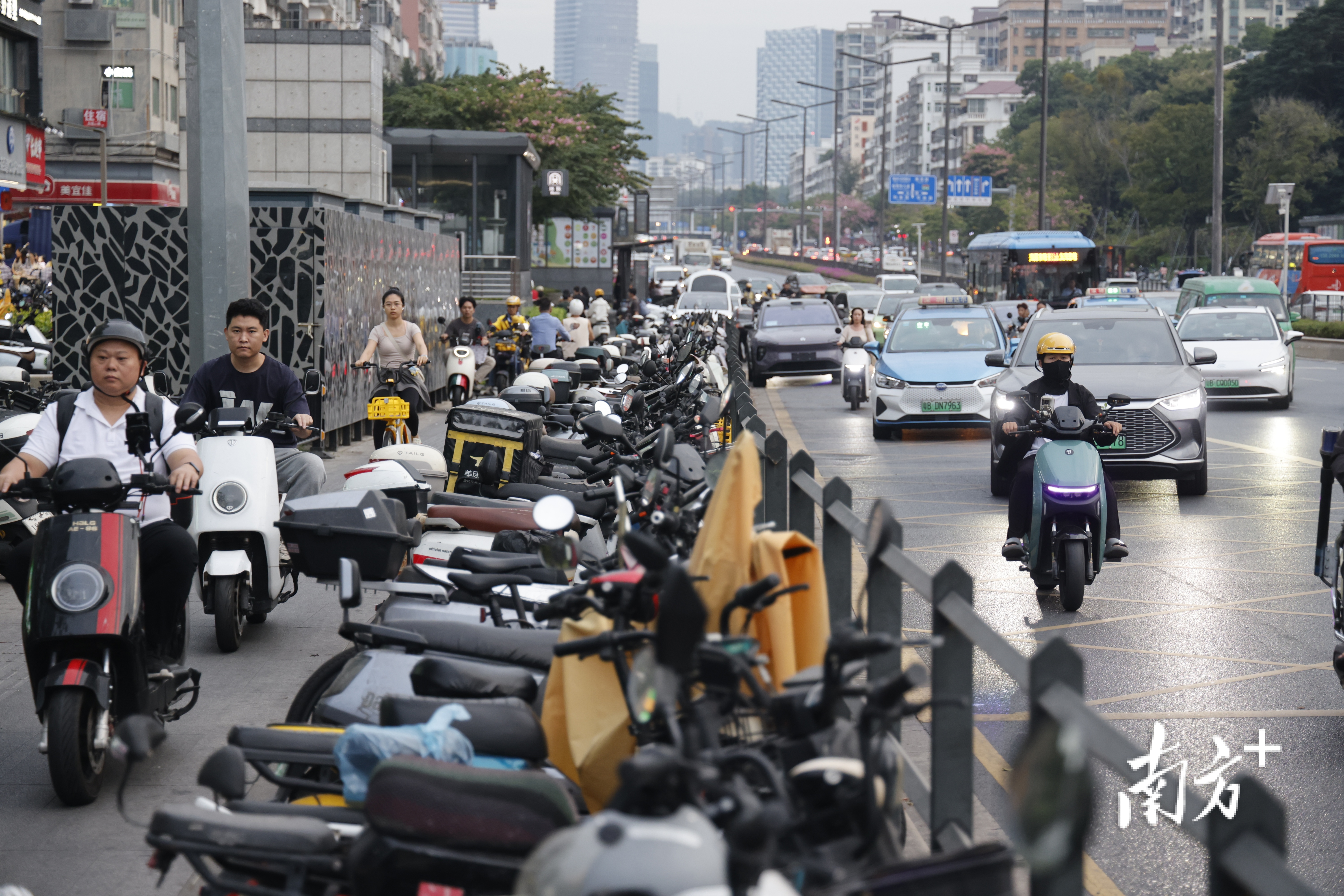 深圳坂田五和地铁站H出口,放眼望去电动自行车密密麻麻。市民骑车在其中穿行。南方+记者 鲁力 摄